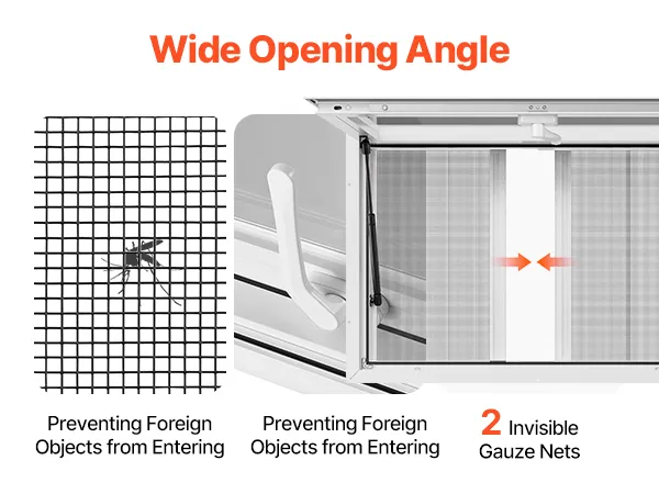 A5: Łatwe w utrzymaniu! Ta wersja jest wyposażona w moskitierę, która skutecznie chroni przed owadami. Powierzchnię okna można czyścić wilgotną ściereczką. Rama jest malowana proszkowo na biało, dzięki czemu jest odporna na olej.