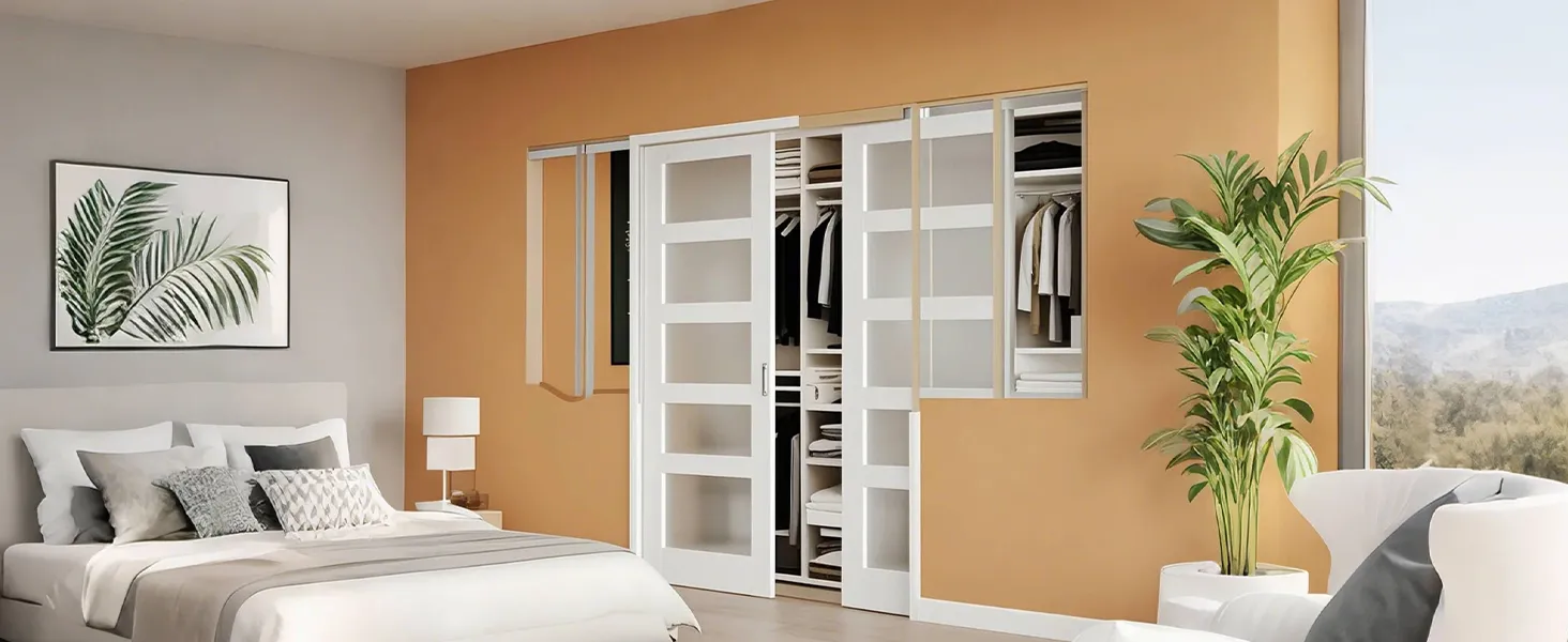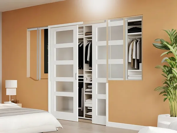 Mechanizm cichego domyku: Wyposażony w wysokiej jakości system cichego domyku, zestaw drzwi przesuwnych zamyka się delikatnie i cicho. Wydłuża to żywotność drzwi i tworzy ciche i komfortowe środowisko dla Ciebie i Twojej rodziny.