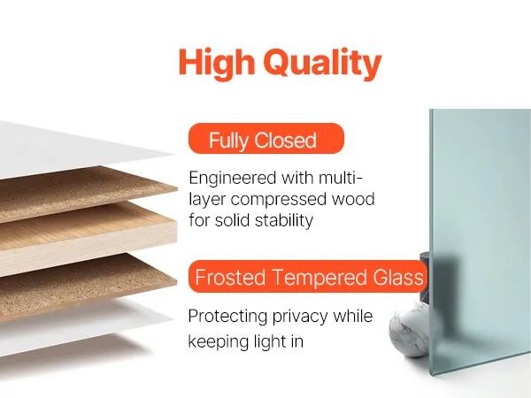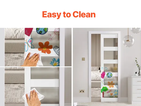 Wytrzymałe i trwałe: Nasze drzwi przesuwne z solidną ramą z litego drewna i płyty MDF oferują doskonałą stabilność i trwałość. Wodoodporna powierzchnia jest łatwa w czyszczeniu. Odporne na stłuczenie i zarysowania matowe szkło przepuszcza naturalne światło, zapewniając jednocześnie prywatność.