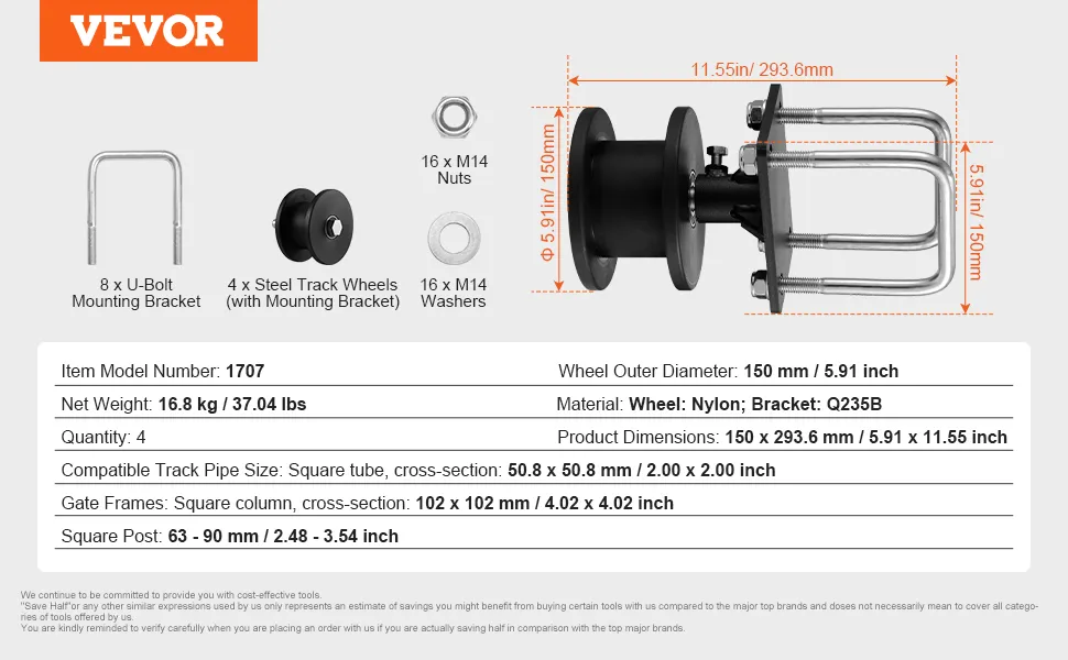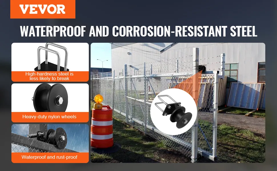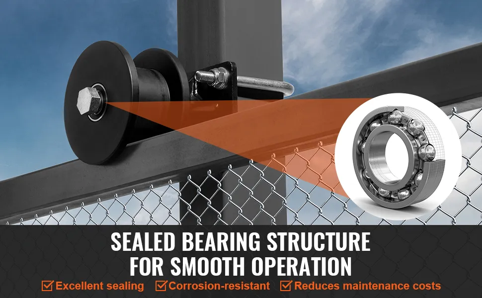 Zestaw do bram przesuwnych VEVOR 150x293,6 mm, zestaw osprzętu do bram rolowanych z rowkiem w kształcie litery H do bram przesuwnych wspornikowych i bram rolowanych, rolki do bram przesuwnych z 4 kołami jezdnymi, wytrzymała rolka ślizgowa, kolor czarny