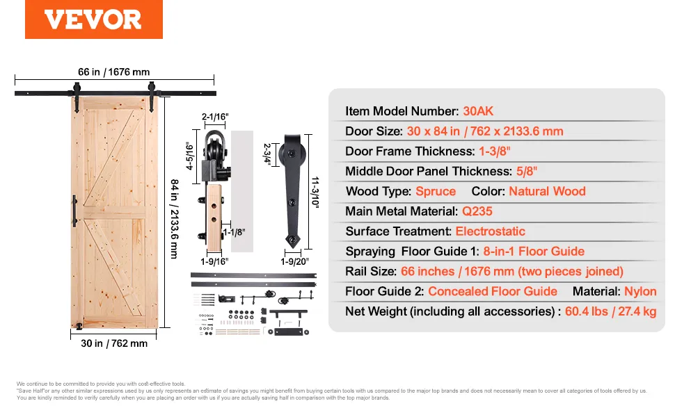 Osprzęt zawarty w zestawie drzwi stodołowych VEVOR jest trwały. Wykonany jest z wysokiej jakości materiałów. Osprzęt jest również zaprojektowany tak, aby był estetyczny. Ten zestaw uzupełnia wygląd drzwi i poprawia wystrój Twojego pokoju. Zarówno trwałość, jak i styl sprawiają, że wyróżnia się. W szczególności osprzęt zapewnia płynne działanie drzwi. Ponadto zwiększa ogólny wygląd całych drzwi. Dzięki temu jest to cenny dodatek do Twojego domu.