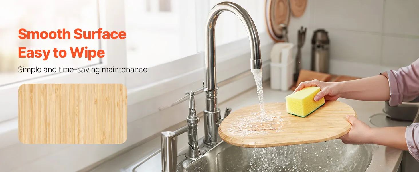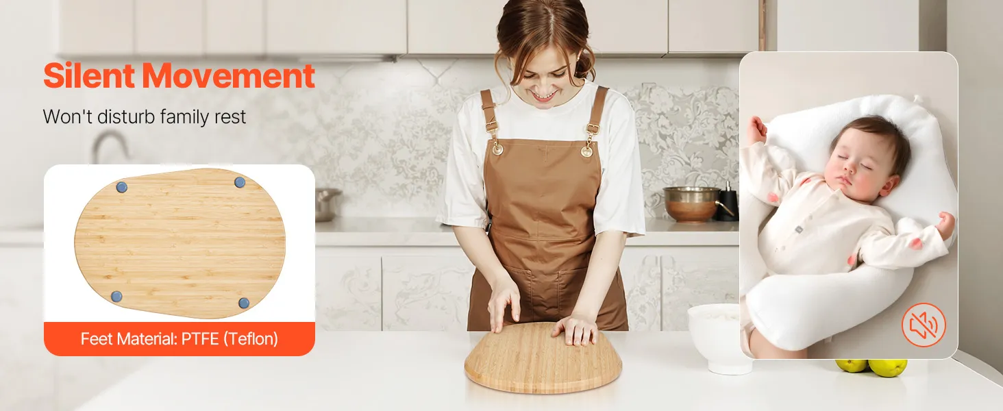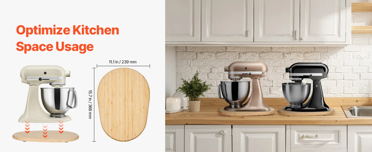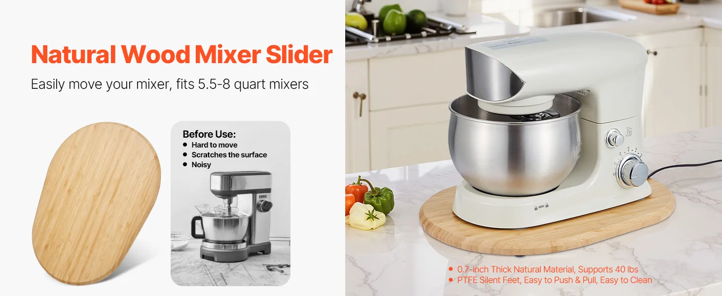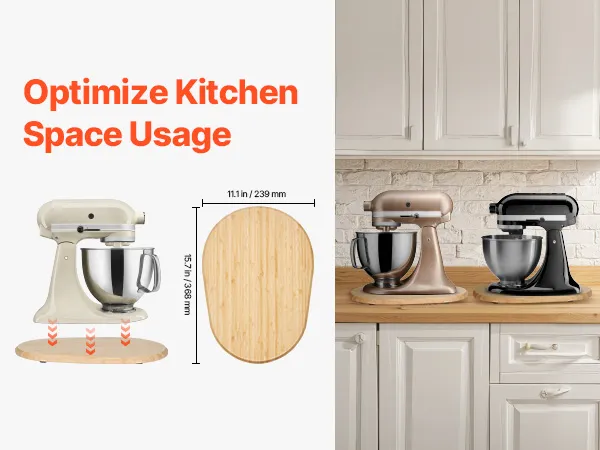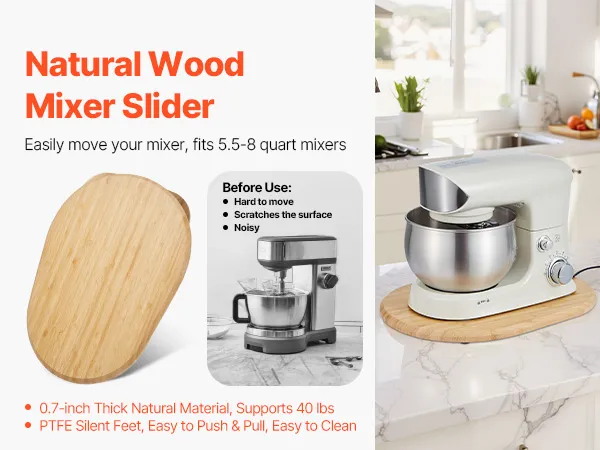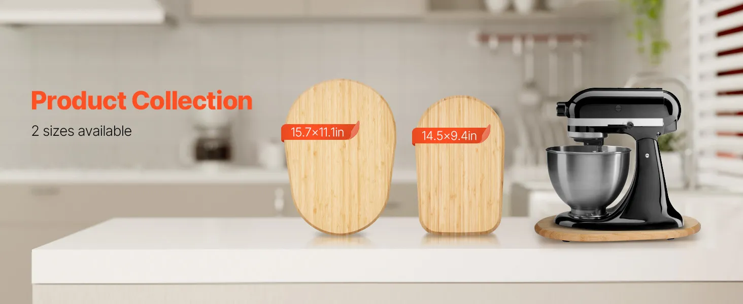 Deska VEVOR, owalna, 399 x 282 x 23 mm, podstawa kompatybilna z mikserem stojącym, deska bambusowa z nóżkami PTFE, zapobiega uszkodzeniom szafek spowodowanym przez parę, deska drewniana, idealna do robota kuchennego