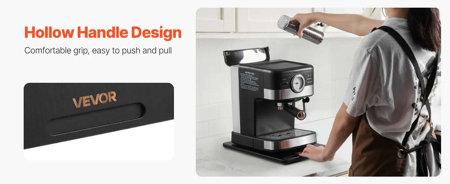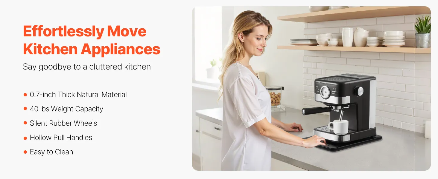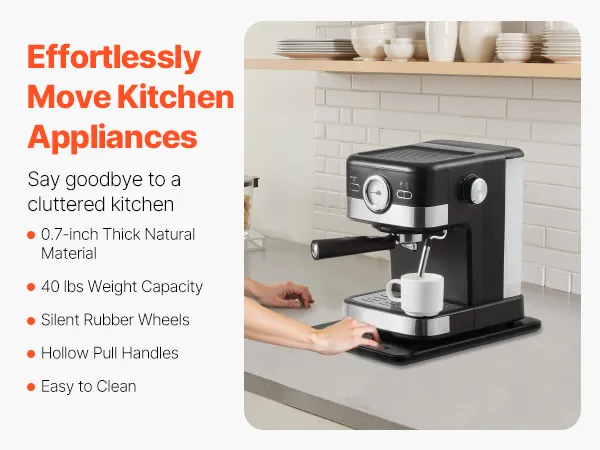 Łatwe przesuwanie: Pusta konstrukcja uchwytu pozwala przesuwać urządzenia jedną ręką, oszczędzając czas i redukując konieczność podnoszenia. Nasza ruchoma tacka na urządzenia maksymalizuje przestrzeń w kuchni, jednocześnie zapobiegając uszkodzeniu szafek przez parę.