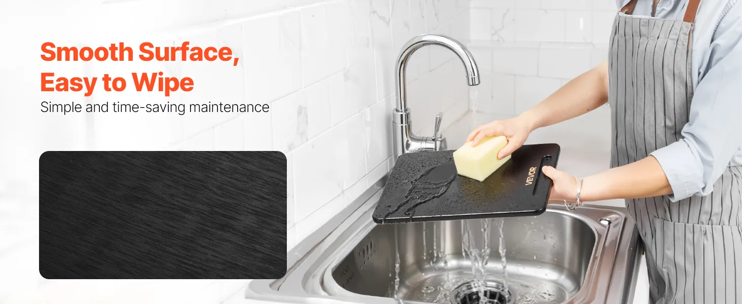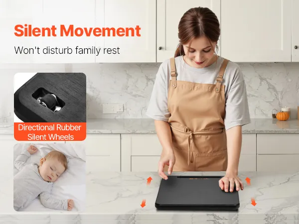 Miękkie, gumowe kółka przesuwnej płyty zabezpieczają blaty od marmuru po drewno. Przesuwaj urządzenia bezszelestnie – żaden hałas nie zakłóci spokoju Twojej rodziny, zapewniając spokój i ciszę w Twojej kuchni.