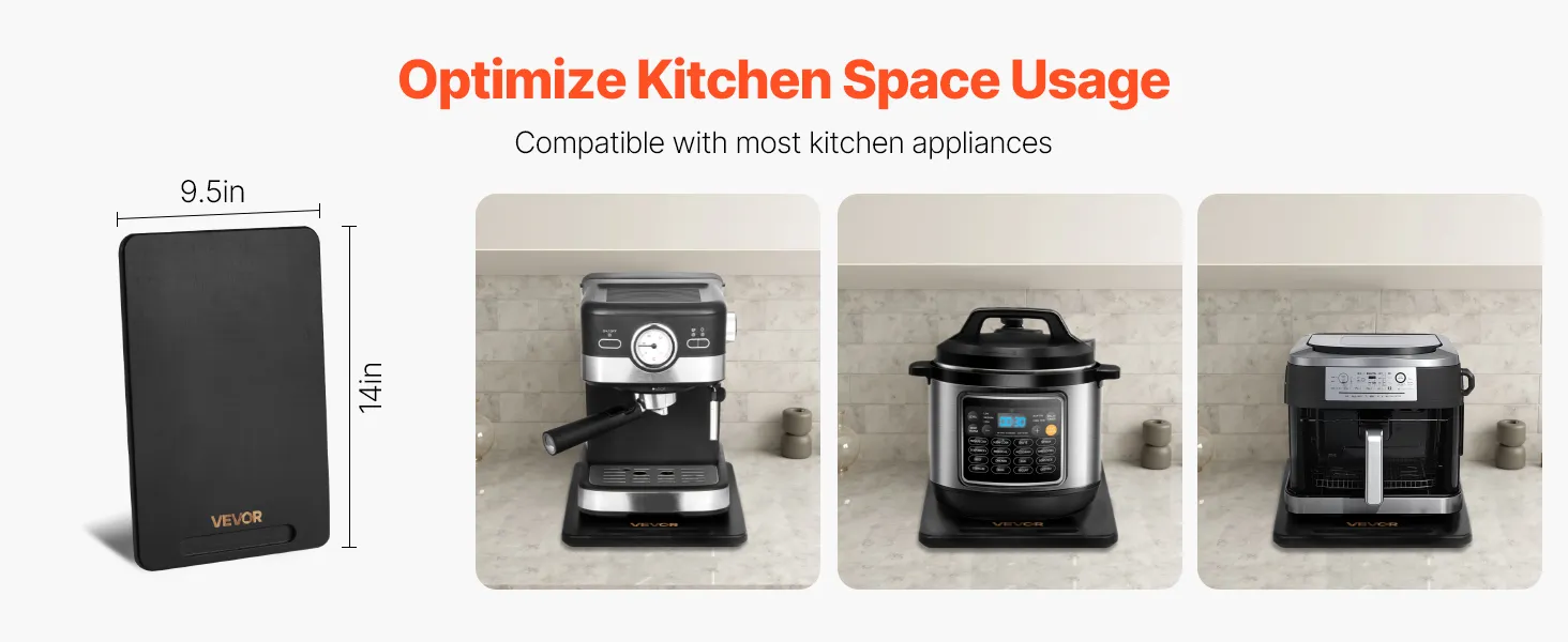 Szeroka kompatybilność: Ta mata przesuwna o wymiarach 14 x 9,5 cala pasuje do większych ekspresów do kawy, piekarników, kuchenek mikrofalowych i innych urządzeń gospodarstwa domowego. To idealne rozwiązanie dla większej wygody w codziennym użytkowaniu!