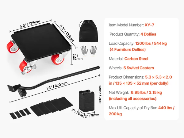 Wózek do transportu mebli VEVOR, maks. ładowność 544 kg, wytrzymały transporter mebli z 5 kołami obrotowymi o 360°, rolka do mebli, zestaw narzędzi do podnoszenia i przenoszenia mebli: sprzęt AGD, sofa, lodówka, pralka