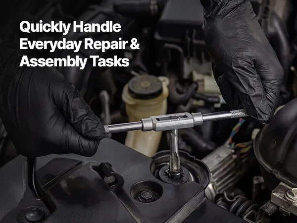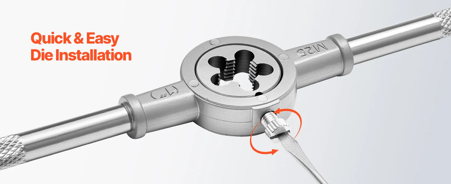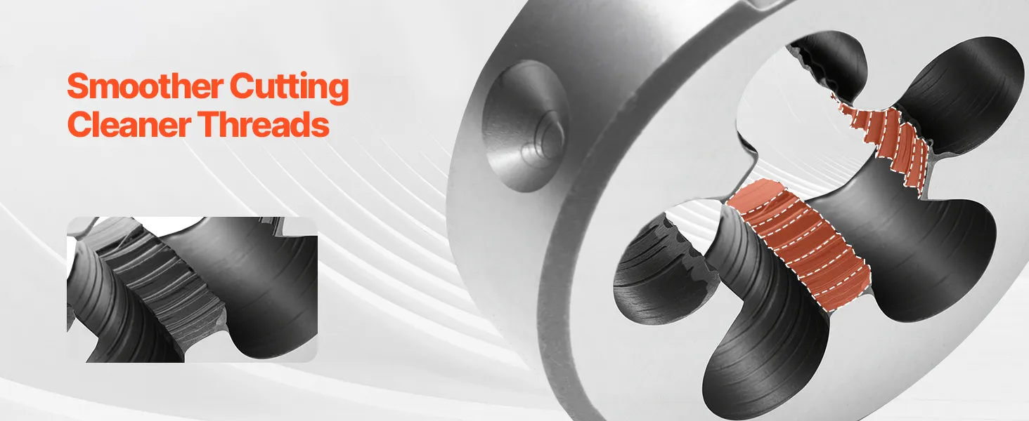 Ten zestaw precyzyjnie nacina nowe gwinty wewnętrzne i zewnętrzne. Stare lub uszkodzone gwinty można skutecznie naprawić, zwiększając precyzję montażu. Ulepszona cieplnie stal łożyskowa charakteryzuje się wysoką twardością, zapewniając stabilność cięcia i trwałość.