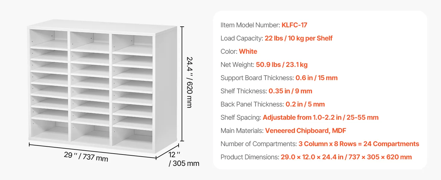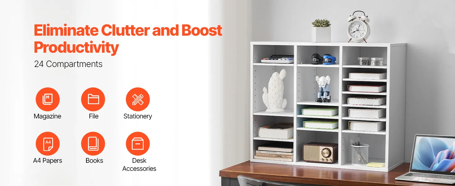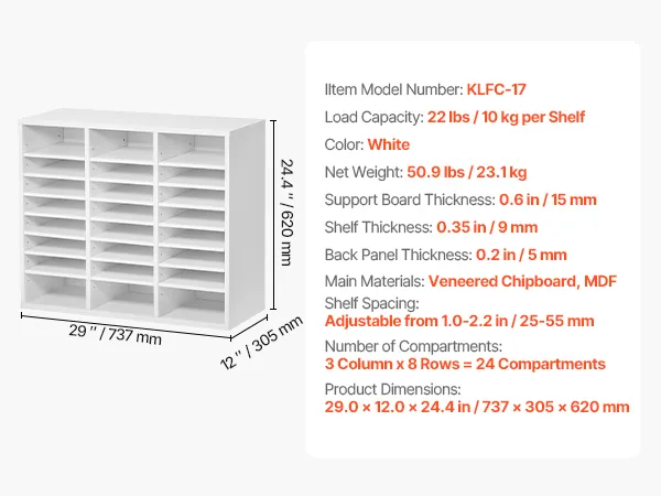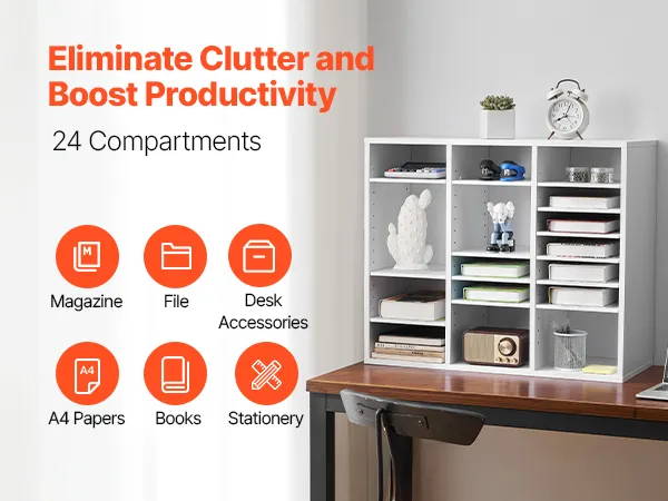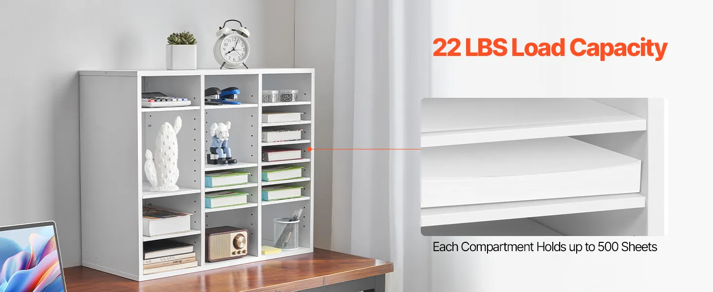 VEVOR Organizer na dokumenty z 24 przegródkami i regulowanymi półkami, tacka na dokumenty do sortowania dokumentów, wykonana z płyty wiórowej i MDF, do biura, sali lekcyjnej, biała