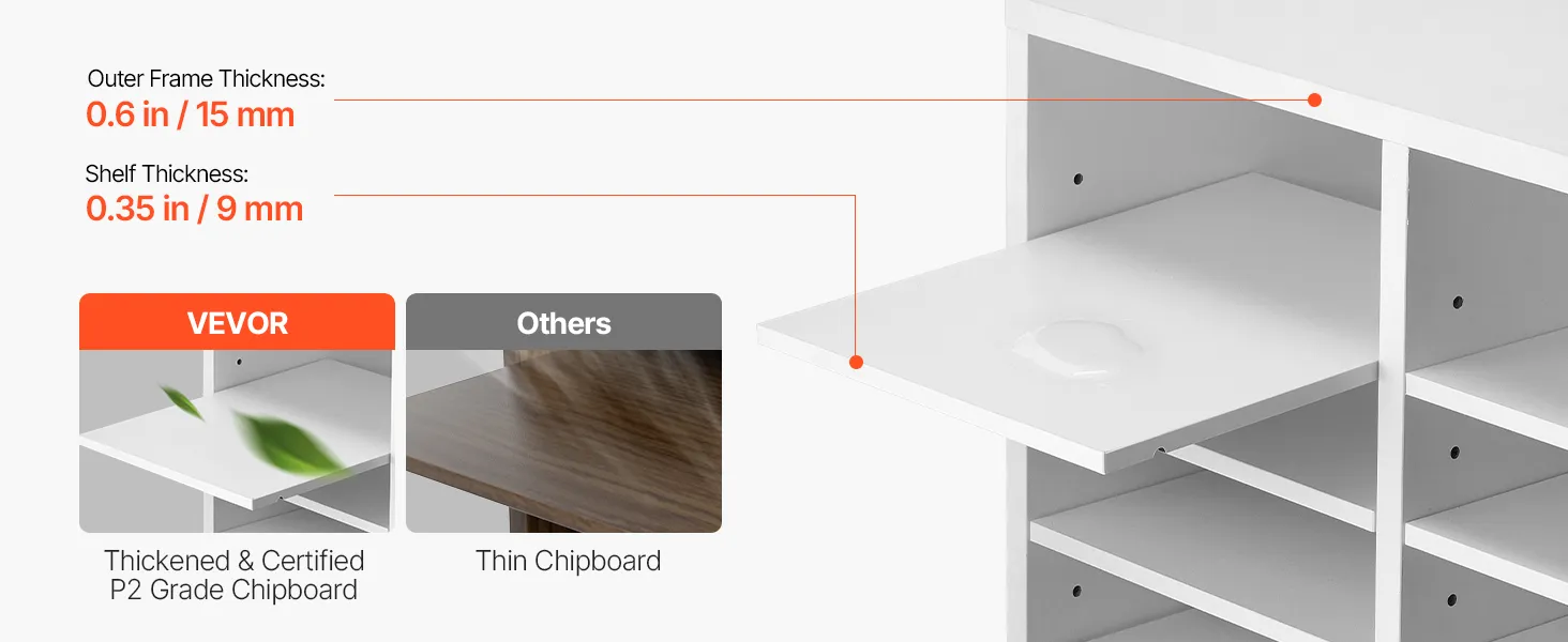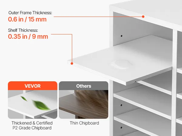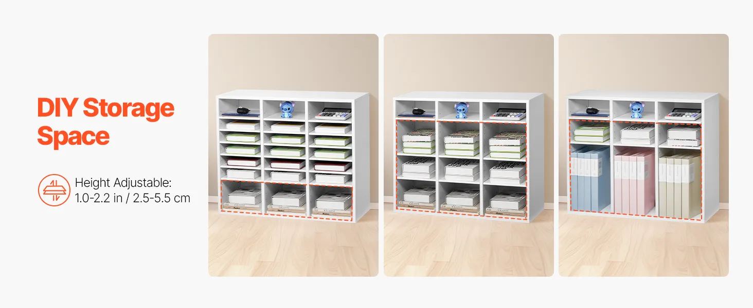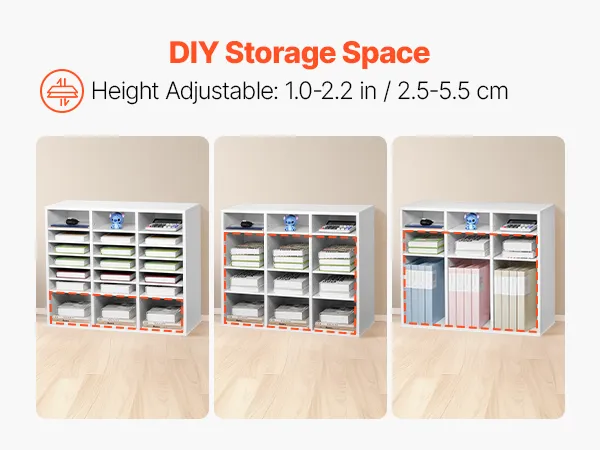 Możliwość dostosowania miejsca do przechowywania: dostosuj skrzynkę pocztową do swoich potrzeb! Każda tacka ma wymiary 9,2 x 11,1 x 2,2 cala (234 x 282 x 56 mm) i mieści do 500 arkuszy papieru A4. Dzięki regulowanej wysokości półek w zakresie od 2,5 do 5,5 cm (od 1 do 2,2 cala) możesz łatwo wymienić lub usunąć półki, aby pomieścić większe pliki lub artykuły biurowe