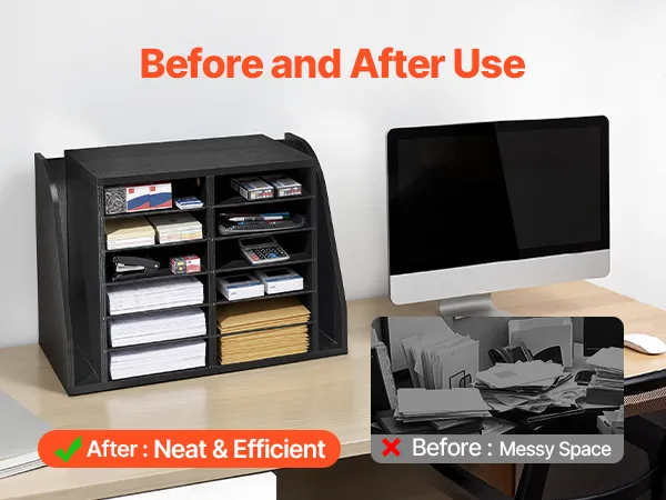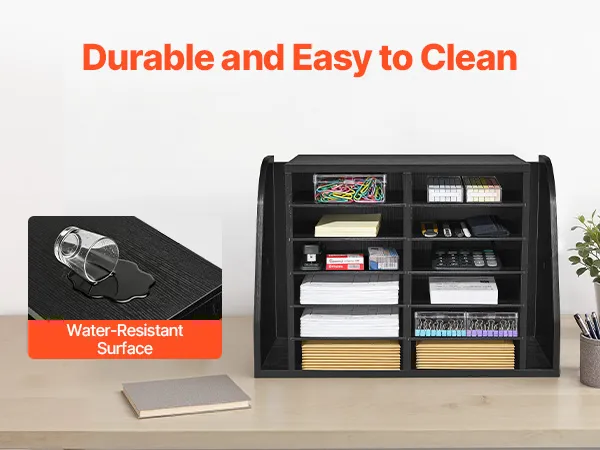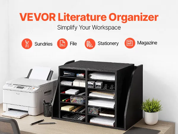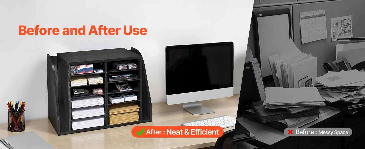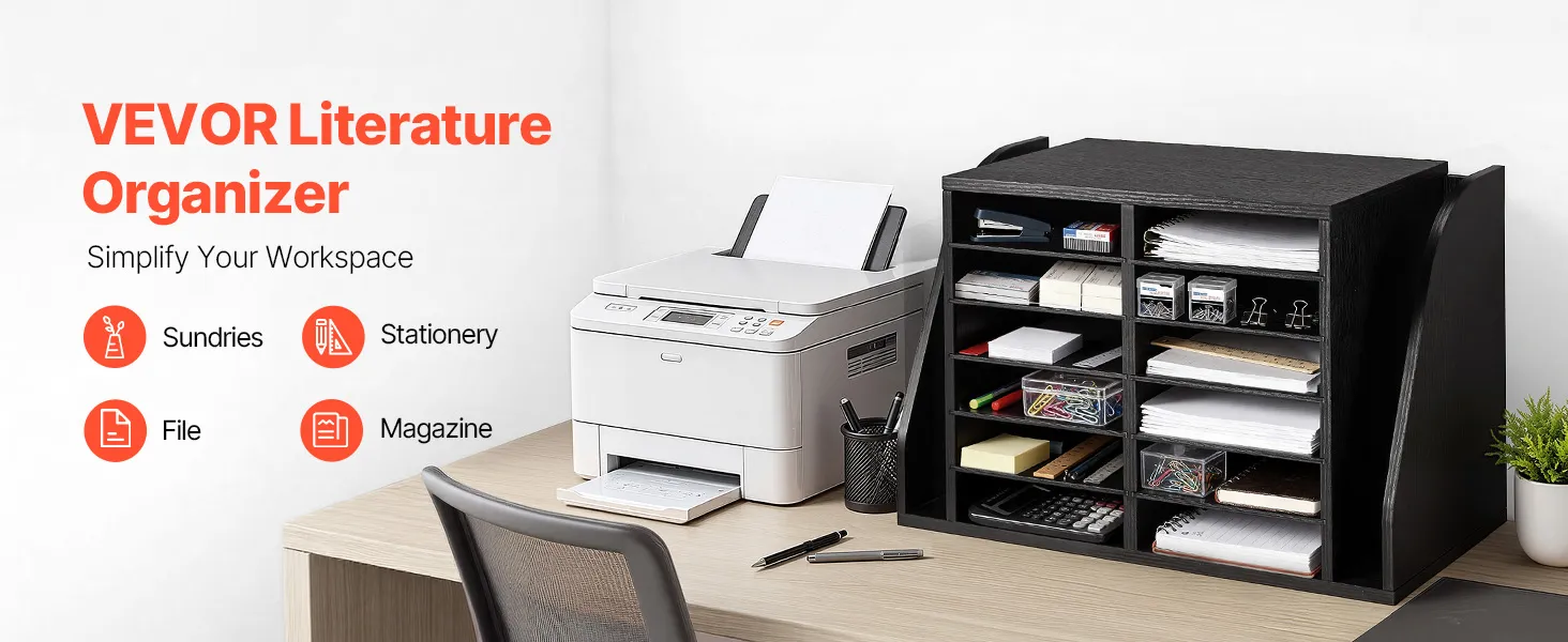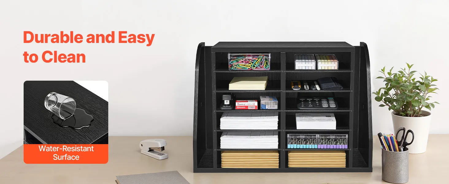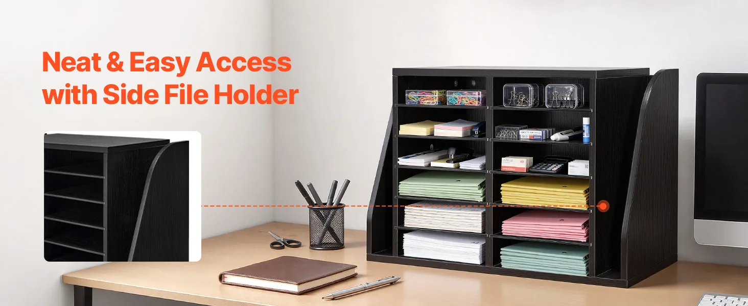 VEVOR Literature Organizer, 12 Compartments Office Mailbox with Side Vertical Storage, Wooden Mailbox Sorter Made of Particle Board, Countertop Office Home  Organizer for File, Document, Paper, Black VEVOR Literature Organizer, 12 Compartments Office Mailbox with Side Vertical Storage, Wooden Mailbox Sorter Made of Particle Board, Countertop Office Home  Organizer for File, Document, Paper, Black