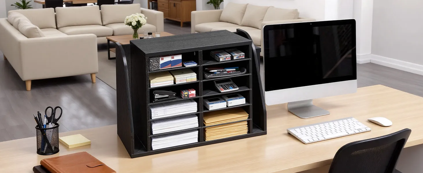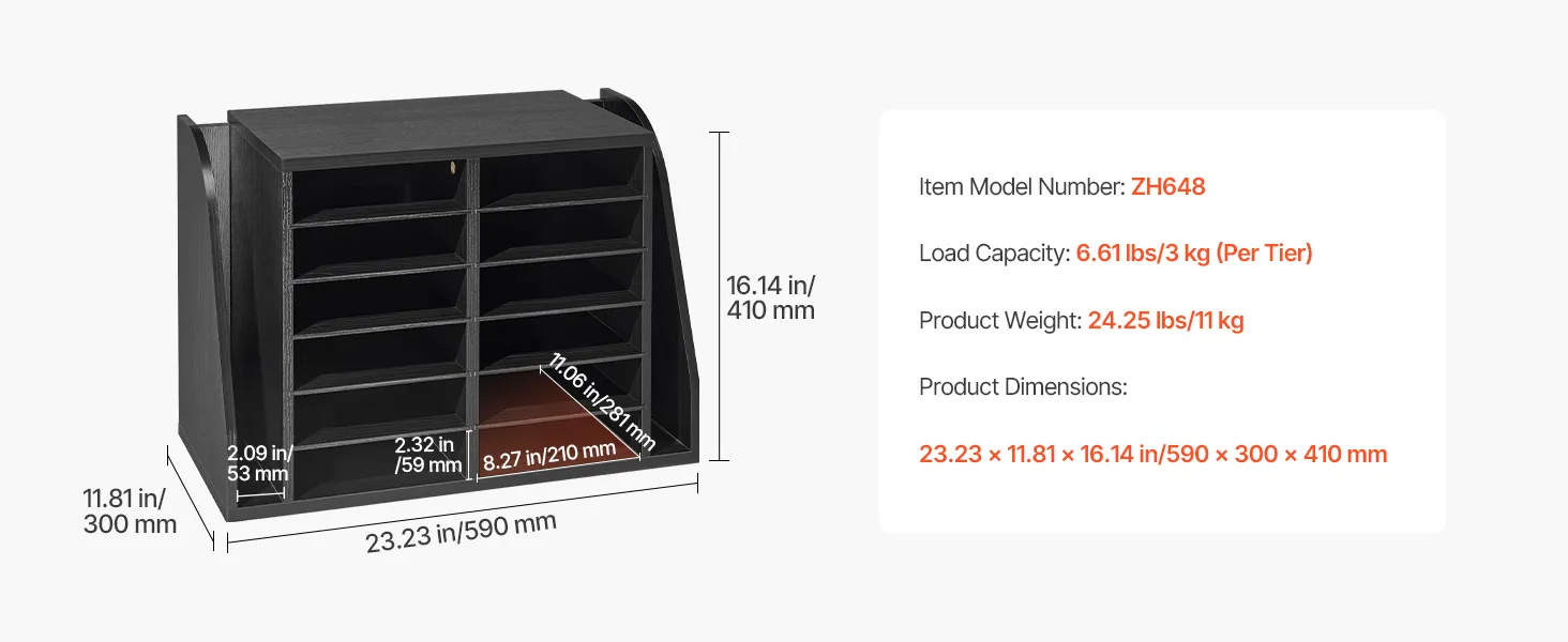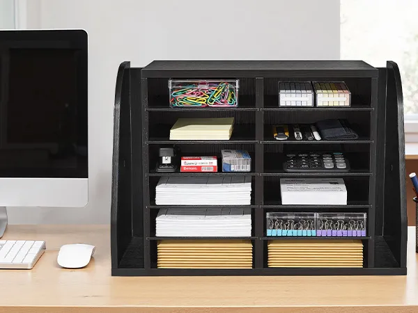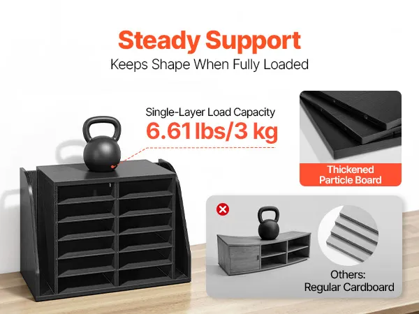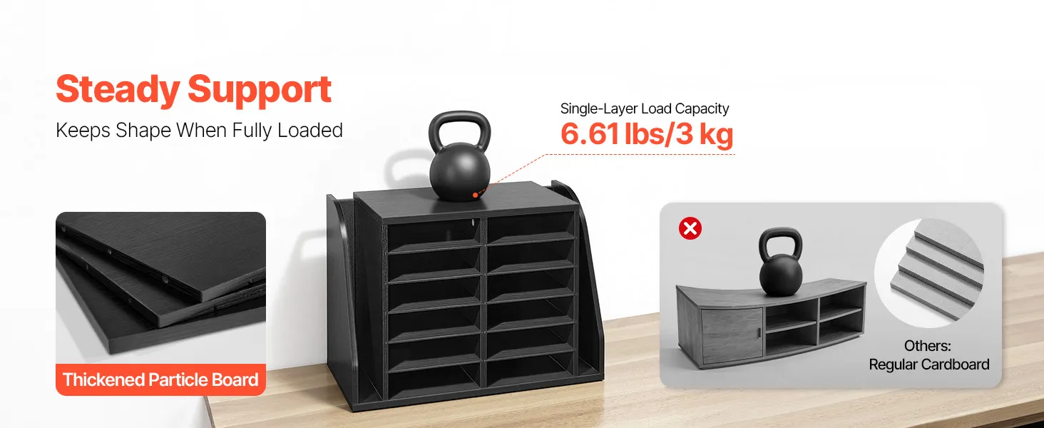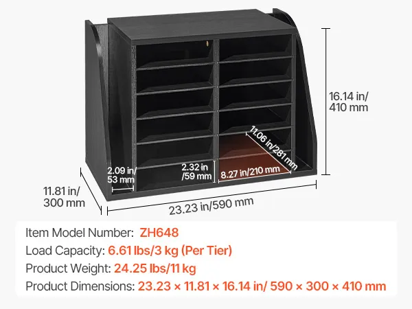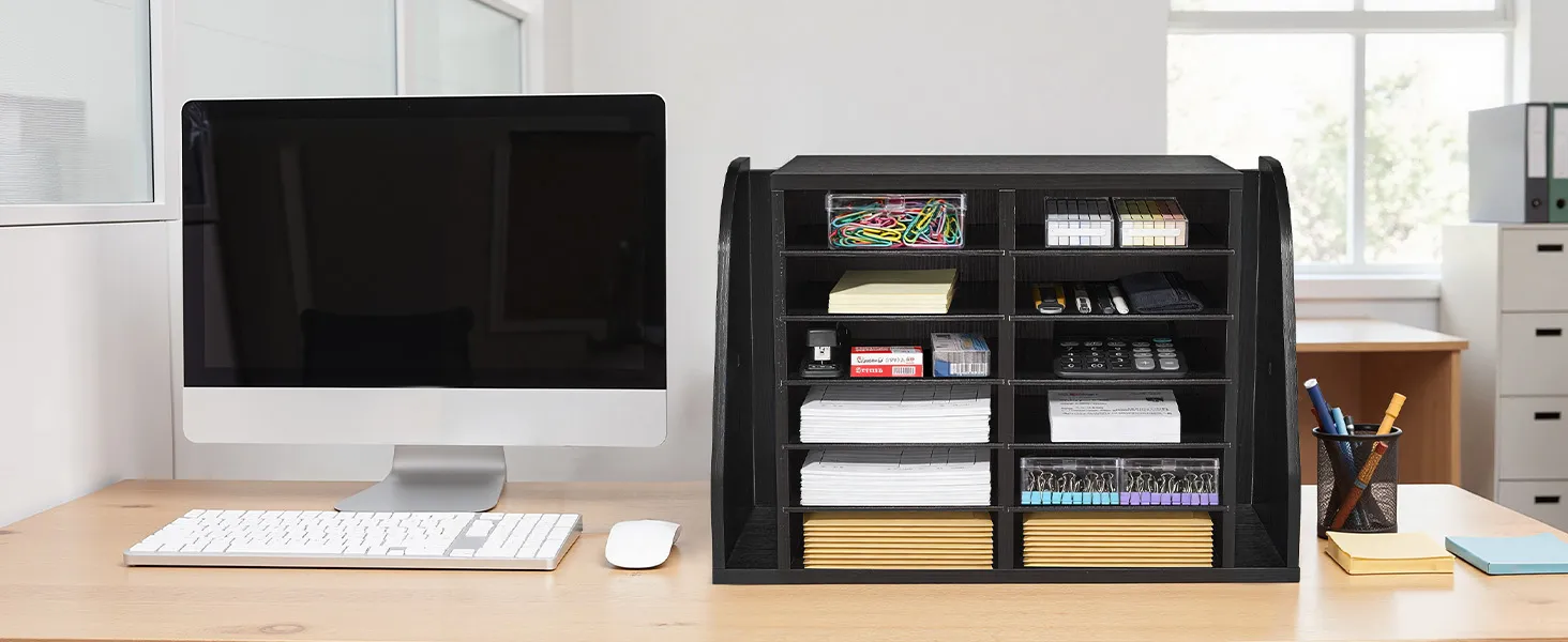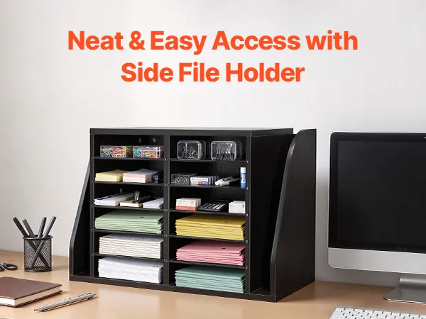 VEVOR Literature Organizer, 12 Compartments Office Mailbox with Side Vertical Storage, Wooden Mailbox Sorter Made of Particle Board, Countertop Office Home  Organizer for File, Document, Paper, Black VEVOR Literature Organizer, 12 Compartments Office Mailbox with Side Vertical Storage, Wooden Mailbox Sorter Made of Particle Board, Countertop Office Home  Organizer for File, Document, Paper, Black