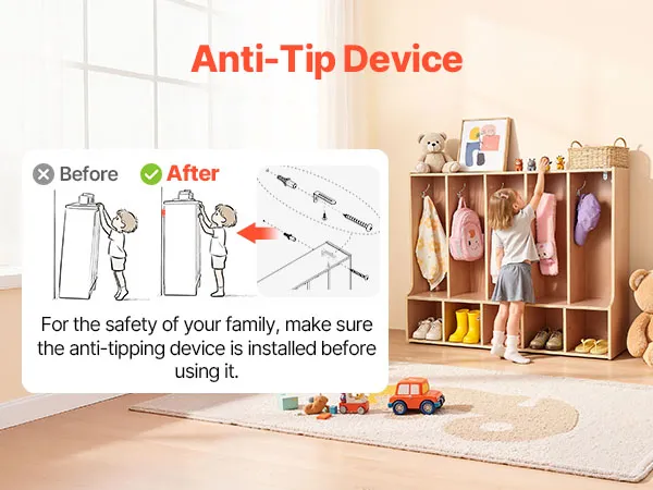 Łatwy montaż i zabezpieczenie przed przewróceniem: Ta dziecięca szafa jest dostarczana ze szczegółową instrukcją i wszystkimi niezbędnymi częściami do szybkiego montażu. Wyposażona jest w zabezpieczenie przed przewróceniem, które umożliwia bezpieczny montaż na ścianie, zapobiegając przewróceniu się i zapewniając dzieciom bezpieczne środowisko.