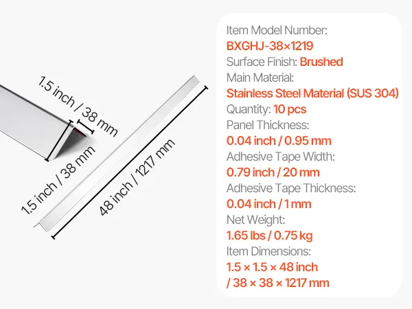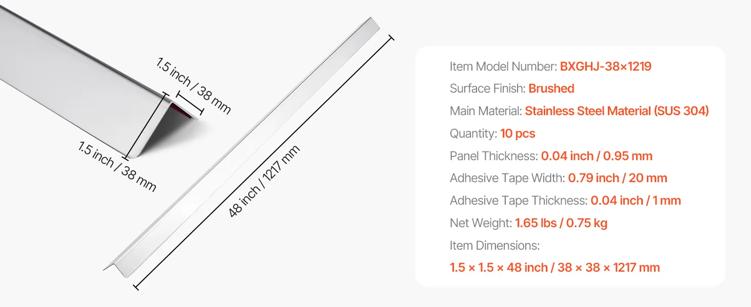 Ochraniacze narożne VEVOR, 38 x 38 x 1217 mm, 10 szt. profili kątowych, ochraniacze narożne ze stali nierdzewnej, ochraniacz ścienny, z taśmą klejącą 3M, kąt 90 stopni, idealne do domu, biura i przestrzeni publicznych