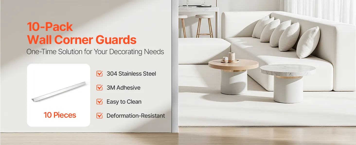 Wystarczająca ilość: Ten 10-częściowy zestaw osłon krawędzi ściennych jest dostępny w rozmiarach 1217 mm (48 cali) i 2436 mm (96 cali), dzięki czemu idealnie nadaje się do wszystkich pomieszczeń, od małych salonów po duże przestrzenie komercyjne, zapewniając kompleksową ochronę ścian