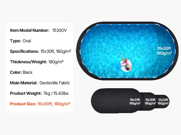 Podkład pod basen VEVOR, 457x914 cm, do basenów naziemnych, bardzo gruba mata gruntowa, zapobiega przebiciom, mata basenowa wykonana z materiału geowłókninowego, przedłuża żywotność wykładziny