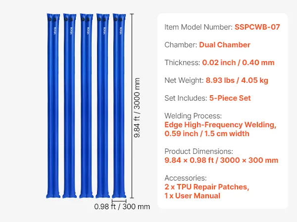 Zwiększ bezpieczeństwo swojego basenu zimą: Ten zestaw 5 dwukomorowych worków na wodę o wymiarach 3000 x 300 mm zapewnia odpowiednią wagę i chroni pokrywę przed zanieczyszczeniami i wiatrem zimą. Te worki na wodę idealnie nadają się do basenów naziemnych i są łatwe do napełniania, opróżniania i przechowywania, oszczędzając czas na sprzątanie zimą.