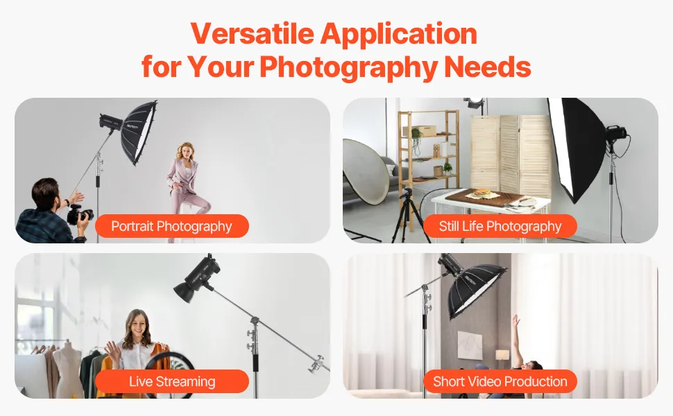 Ten wytrzymały statyw oświetleniowy doskonale sprawdzi się w wielu zastosowaniach, m.in. w fotografii portretowej, sesjach martwej natury, transmisjach na żywo i produkcji filmowej. Spełnia różnorodne potrzeby fotografów i wideofilmowców oraz oferuje niezawodne wsparcie dla różnorodnych projektów kreatywnych.