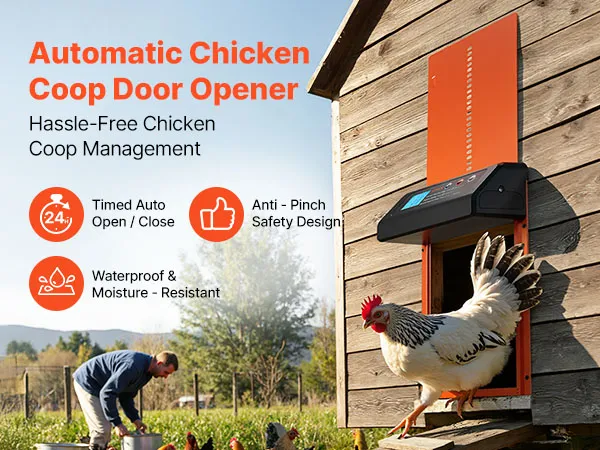 Automatyczne drzwi do kurnika posiadają dwa inteligentne tryby – timer i ręczny – zapewniające elastyczne sterowanie. Konstrukcja zabezpieczająca przed przytrzaśnięciem zapewnia bezpieczne wchodzenie i wychodzenie kurczaków. Wodoodporne i odporne na wilgoć, działają niezawodnie w każdych warunkach pogodowych.