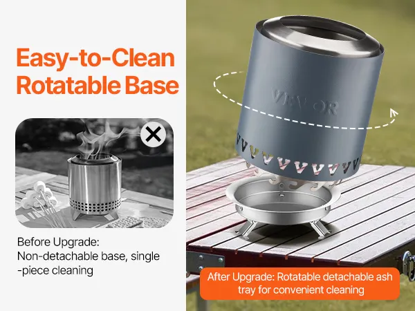 Wyposażony w obrotową, zdejmowaną podstawę, ten kominek stołowy jest łatwy w czyszczeniu. Bez trudu usuniesz wszelkie pozostałości paliwa i ciesz się komfortowym i czystym przebywaniem na świeżym powietrzu.