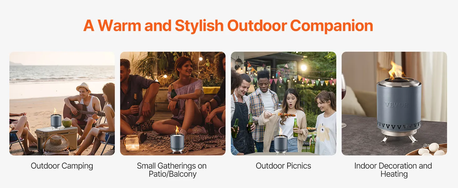 Towarzysz spotkań na świeżym powietrzu: To palenisko stołowe idealnie nadaje się na kemping i spotkania na patio. Zapewnia ciepło i poprawia nastrój, sprawiając, że każda chwila na świeżym powietrzu staje się przytulna i pełna życia.