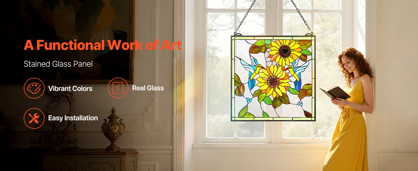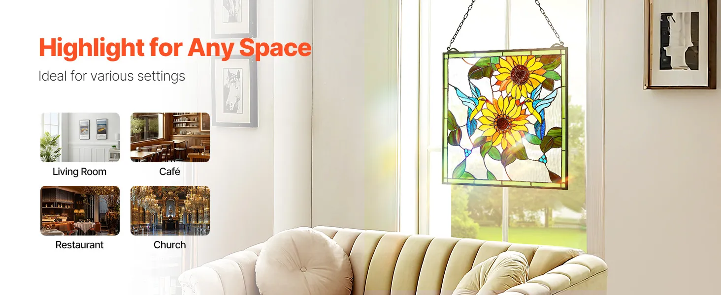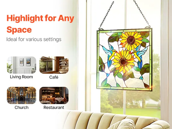Wszechstronny: Ten witrażowy panel wiszący idealnie nadaje się do salonów, jadalni, kawiarni czy kościołów. Dodaje ciepłej, artystycznej atmosfery każdemu wystrojowi i natychmiast go upiększa.
