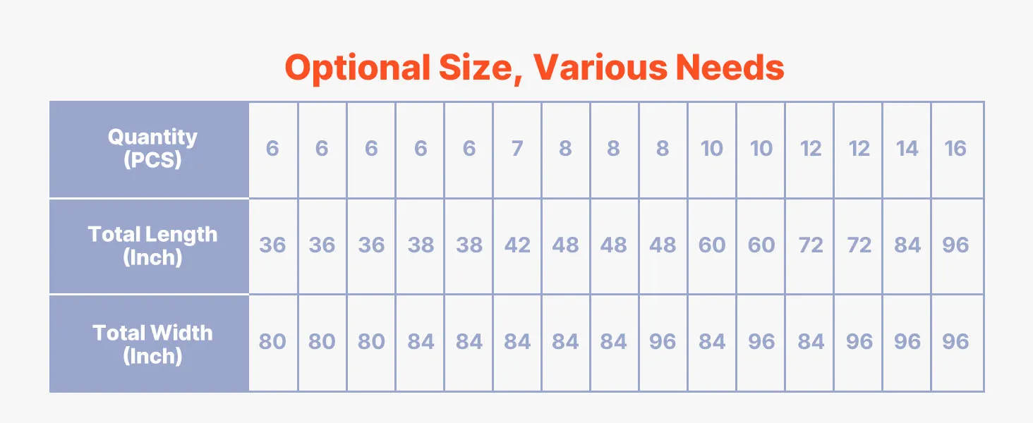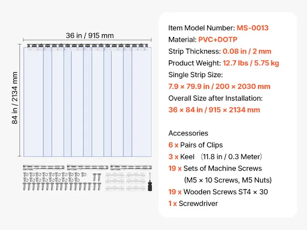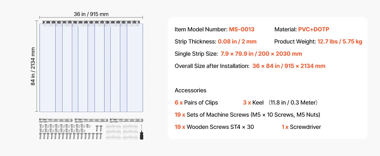 Nasza kurtyna paskowa jest dostępna w kilku rozmiarach, aby spełnić Twoje potrzeby – 2134 mm długości i 915 mm szerokości, co zapewnia solidne i trwałe wykonanie. Zapewnia całkowite pokrycie ościeżnicy bez wyginania, odkształcania i utraty kształtu.