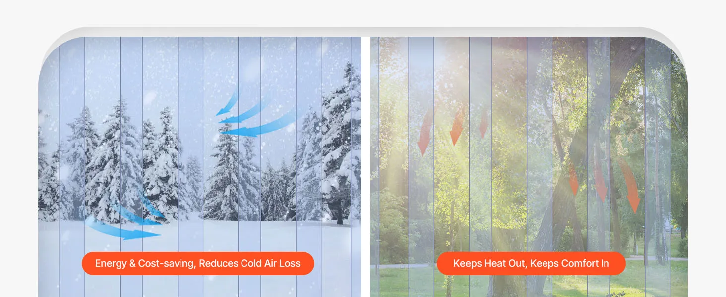 Gotowe na każdą porę roku: Nasza zasłona do drzwi zamrażarki jest idealna do temperatur od -55,6°C do 30°C. Utrzymuje chłód powietrza latem i blokuje przeciągi zimą.