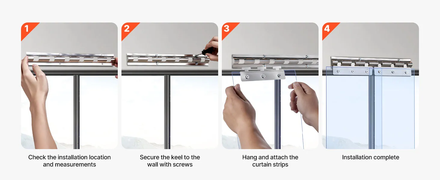 Możliwość przycinania i łatwy montaż: Po dokonaniu precyzyjnych pomiarów przytnij pasek zasłony do zamrażarki zgodnie z rzeczywistymi potrzebami i zamontuj go w zaledwie 4 prostych krokach.