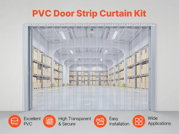 Kurtyna paskowa z tworzywa sztucznego VEVOR, 915 x 2134 mm, grubość 2 mm, opakowanie 6 sztuk, plastikowa taśma do drzwi magazynowych, mroźniczych i garażowych, gładka, przezroczysta
