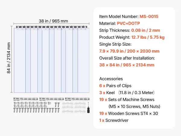 Nasza kurtyna paskowa jest dostępna w kilku rozmiarach, aby spełnić Twoje potrzeby – 2134 mm długości i 965 mm szerokości, co zapewnia solidne i trwałe wykonanie. Zapewnia całkowite pokrycie ościeżnicy bez wyginania, odkształcania i utraty kształtu.