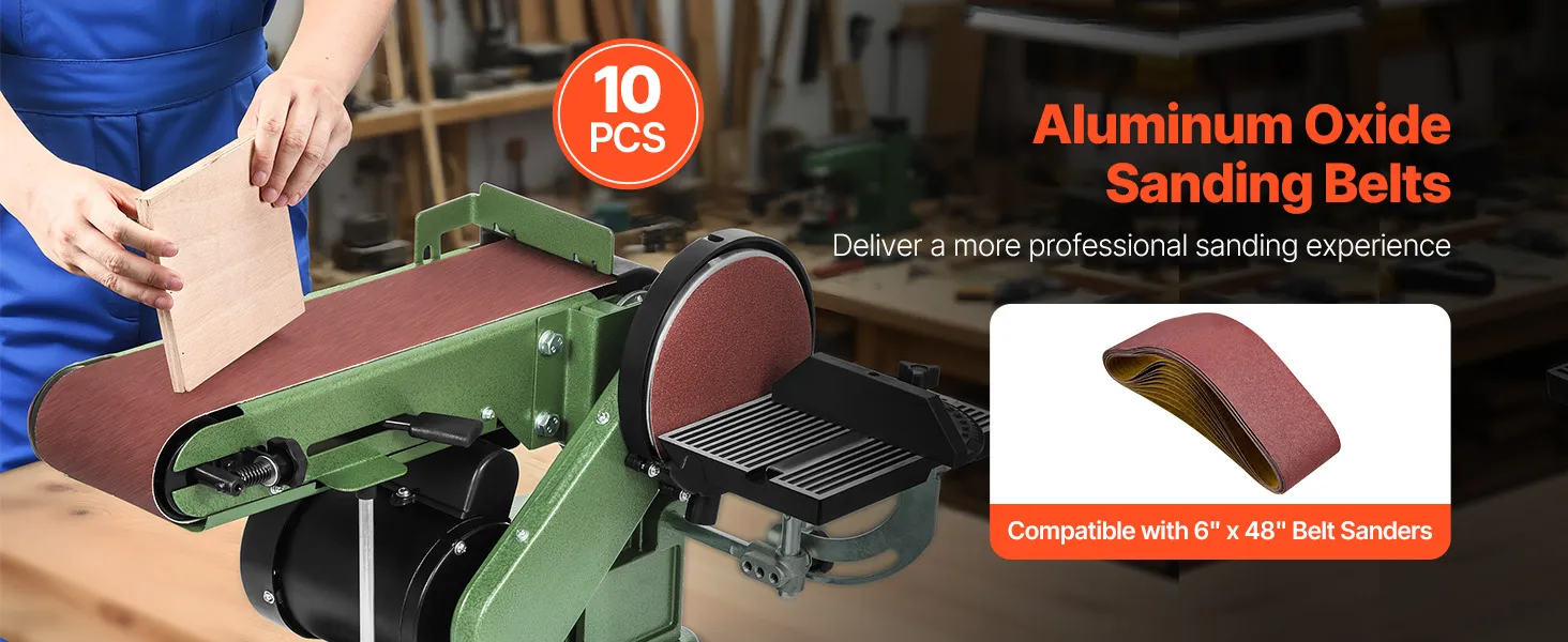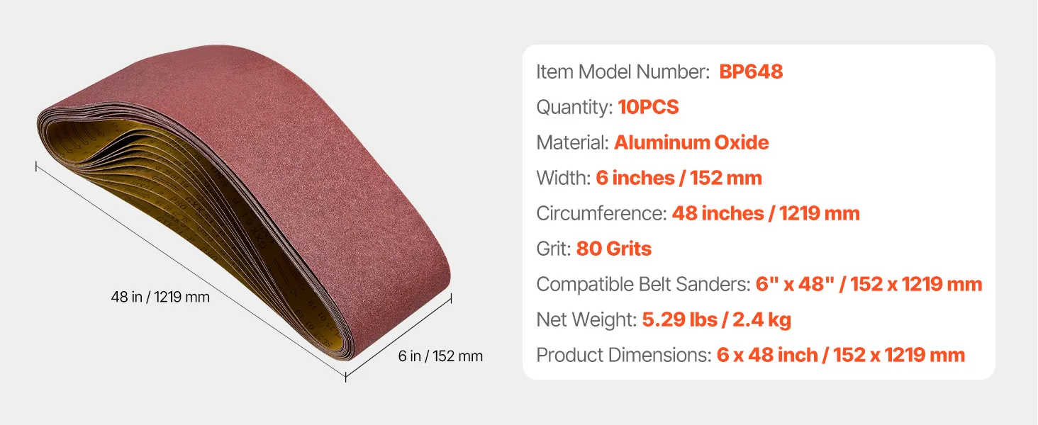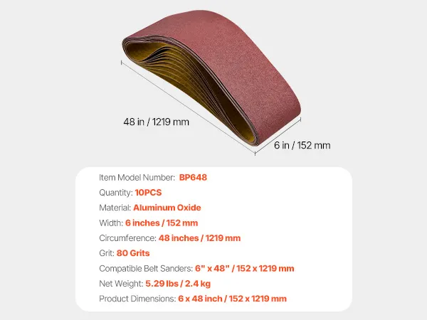 Paski ścierne VEVOR, 152 x 1219 mm, papier ścierny do szlifierki taśmowej, 10 sztuk, ziarnistość 80, materiał ścierny z tlenku glinu do obróbki drewna, stali, aluminium, metali nieżelaznych