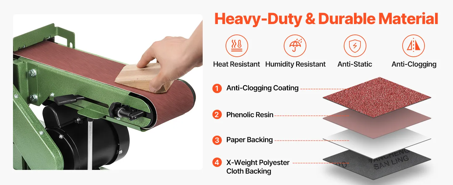 Dzięki powłoce zapobiegającej zatykaniu, żywicy fenolowej, podkładowi papierowemu i podkładowi z tkaniny poliestrowej o gramaturze X, pasy ścierne z tlenku glinu charakteryzują się wyjątkową trwałością i odpornością na zużycie, dzięki czemu idealnie nadają się do długotrwałego stosowania.