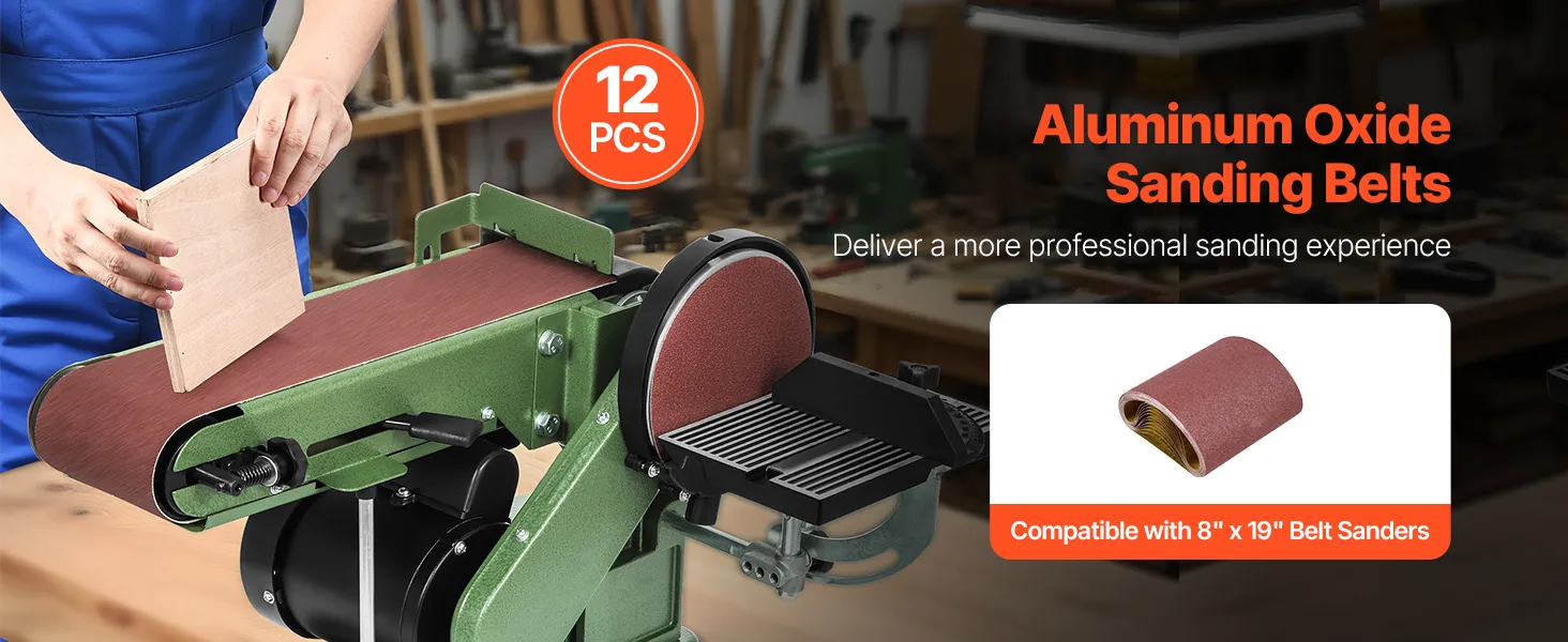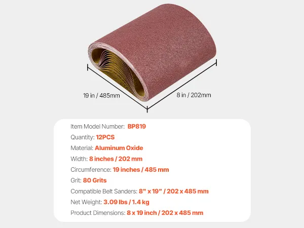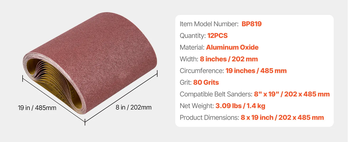 Paski ścierne VEVOR, 202 x 485 mm, papier ścierny do szlifierek taśmowych, 12 sztuk, ziarnistość 80, materiałowy pas ścierny z tlenku glinu, idealny do obróbki drewna, stali, aluminium, metali nieżelaznych