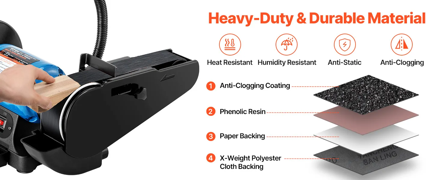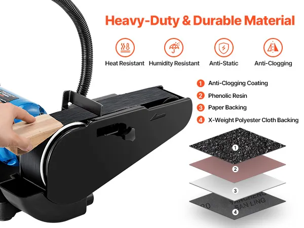 Wysokiej jakości konstrukcja: Ta wielowarstwowa struktura składa się z powłoki zapobiegającej zatykaniu, żywicy fenolowej, podkładu papierowego i podkładu z tkaniny poliestrowej o gramaturze X, zapewniając doskonałą odporność na ciepło i wilgoć, długą trwałość i stabilne szlifowanie, co pozwala na uzyskanie profesjonalnego wykończenia.