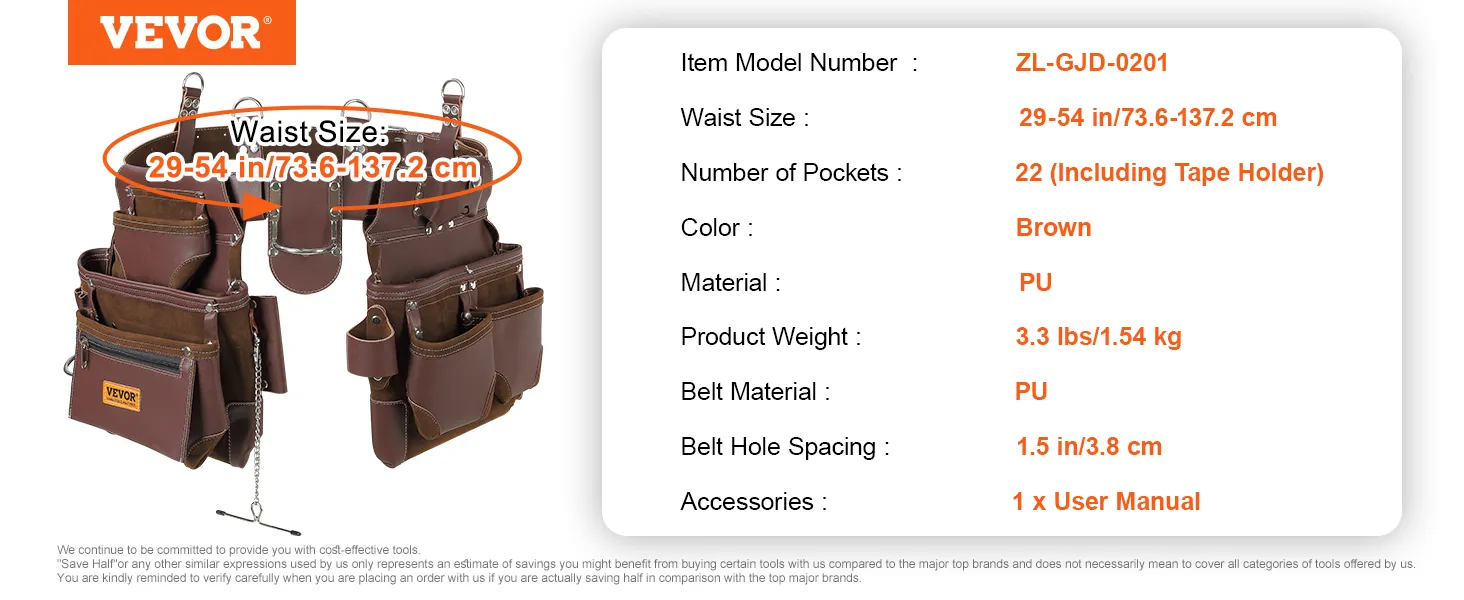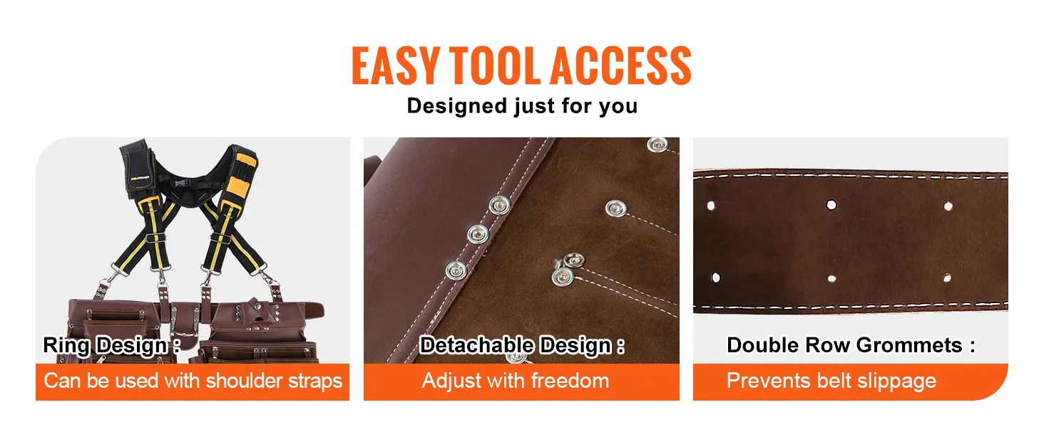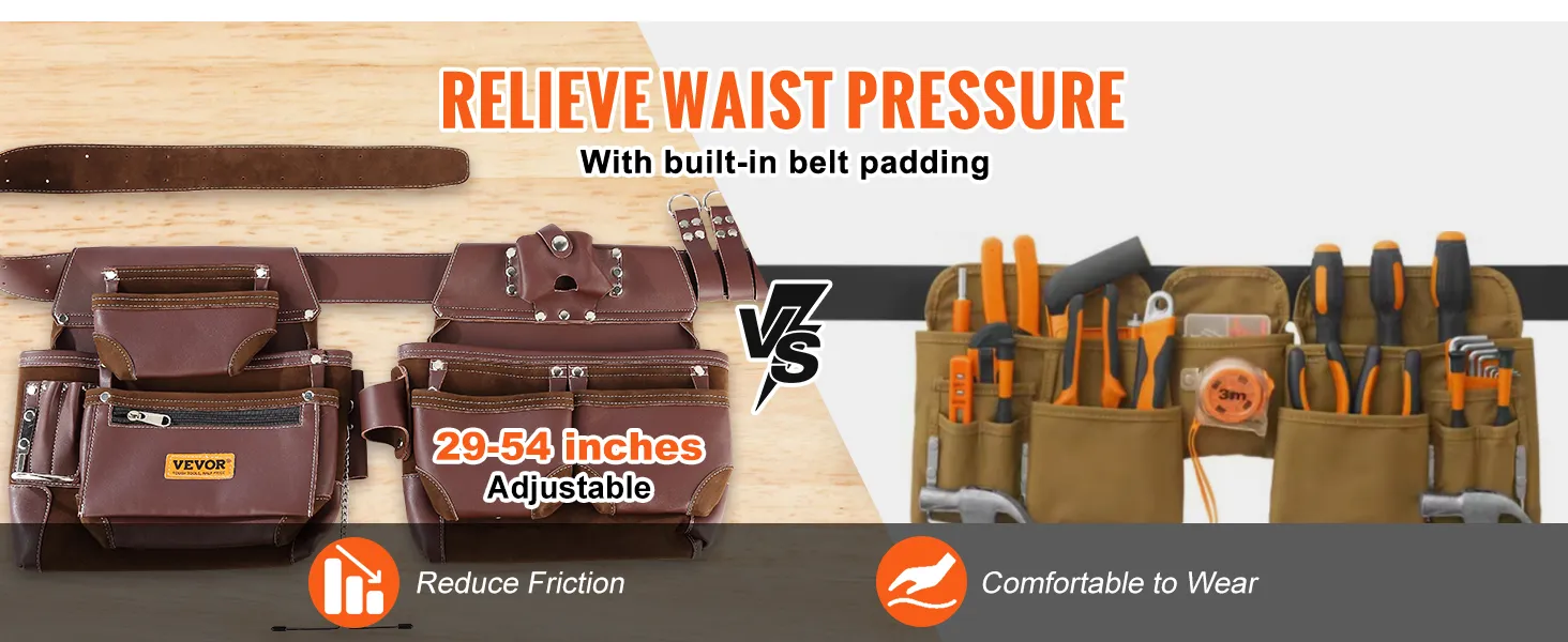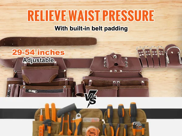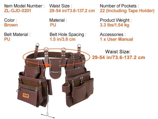 Pas narzędziowy VEVOR jest wykonany z najwyższej jakości materiału PU. Zapewnia to trwałość i wygodę. Pas może obsługiwać ciężkie narzędzia bez zużycia. Jest zaprojektowany tak, aby służył przez lata. Materiał jest miękki, ale wytrzymały. Dlatego idealnie pasuje do większości użytkowników. Pasek łatwo się dopasowuje do talii o obwodzie od 29 do 54 cali. Oznacza to, że będzie idealny na długie dni w pracy. Regulowane paski zapewniają elastyczność dla wielu użytkowników w różnych warunkach. Nasz pas jest lekki, waży zaledwie 3,3 funta. Zmniejsza zmęczenie. Regulowane paski pomagają również dostosować go pod kątem wygody. Niezależnie od tego, czy jesteś stolarzem, elektrykiem czy majsterkowiczem, ten pas narzędziowy spełni Twoje potrzeby. Jego trwała konstrukcja zapewnia, że wytrzyma codzienne użytkowanie. Możesz czyścić i konserwować ten pas narzędziowy do każdego projektu.