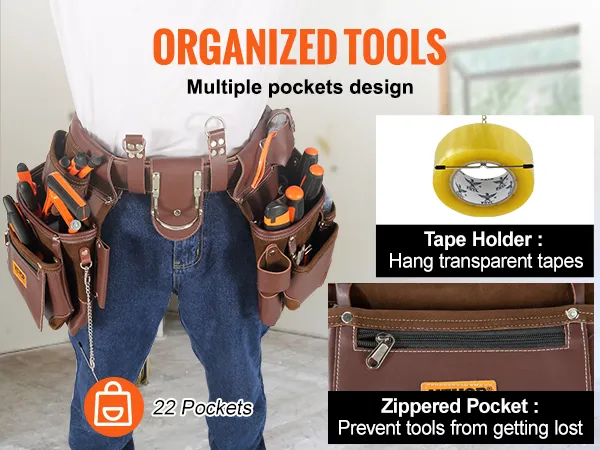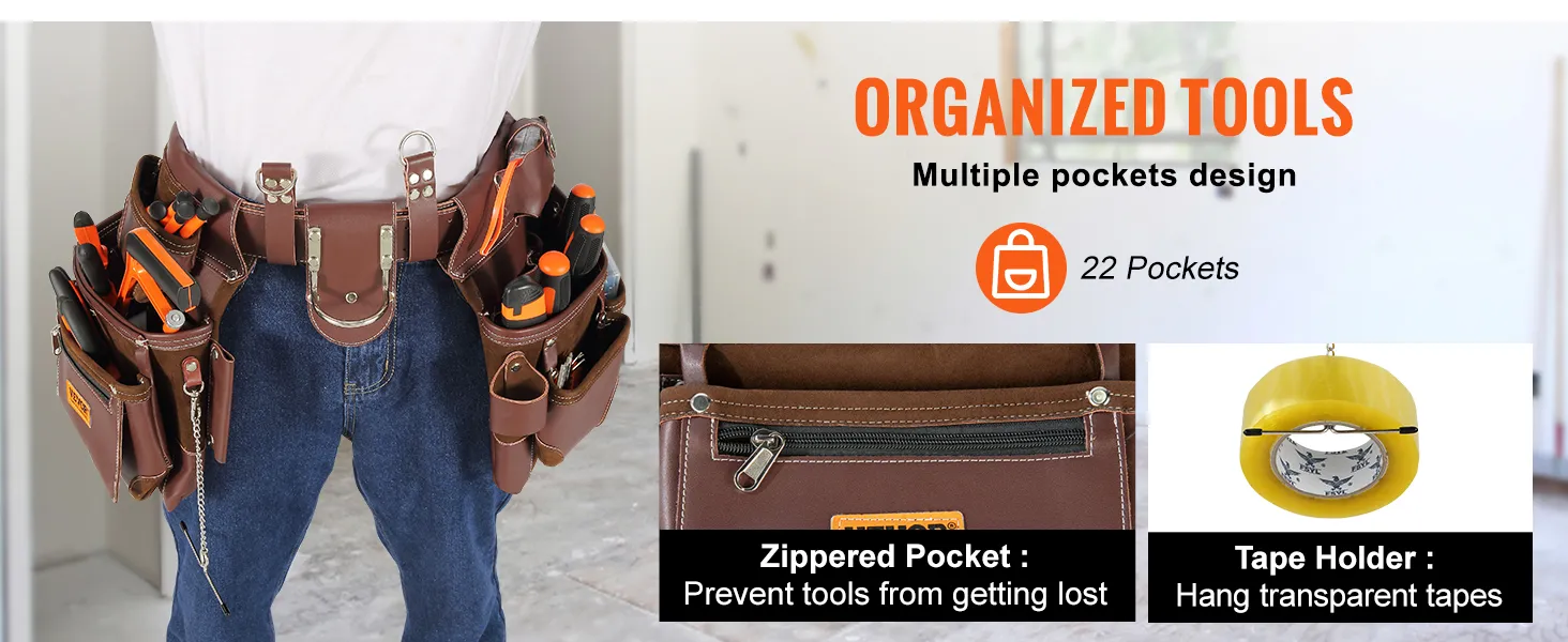 Pas narzędziowy VEVOR ma 22 kieszenie. Zapewnia to wystarczająco dużo miejsca na różne narzędzia. Kieszenie są zaprojektowane tak, aby zapewnić łatwy dostęp. Możesz szybko znaleźć potrzebne narzędzie. Te kieszenie są wystarczająco głębokie, aby bezpiecznie trzymać narzędzia. Zapobiega to wypadaniu przedmiotów. Pas zawiera uchwyt na taśmę bluszczową. Dzięki temu miarka jest zawsze pod ręką. Są uporządkowane, aby zapewnić optymalne wykorzystanie. Dzięki temu wszystkie niezbędne narzędzia będziesz mieć pod ręką. Zwiększy to wydajność pracy. Nasze kieszenie są wykonane z mocnego materiału. Wytrzymują regularne zużycie i rozdarcie. Polecamy ten pas narzędziowy dla stolarzy i elektryków.