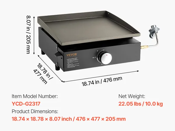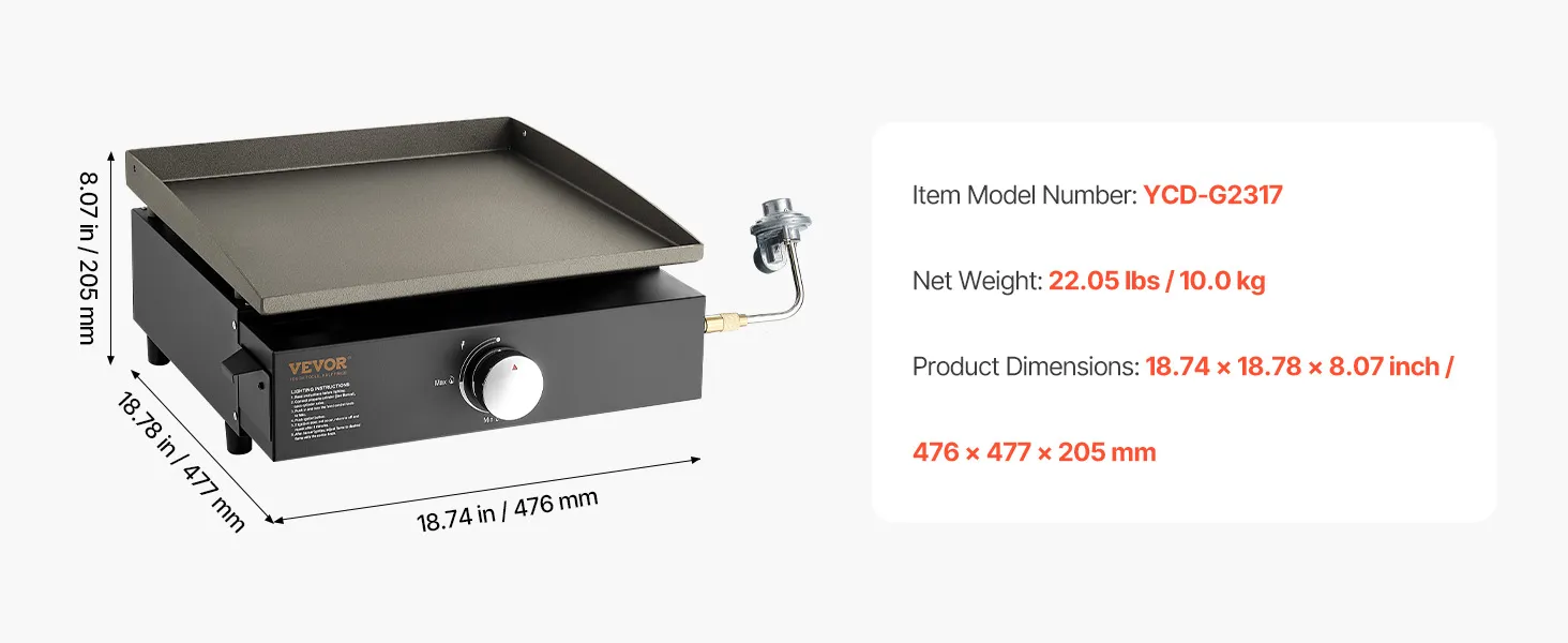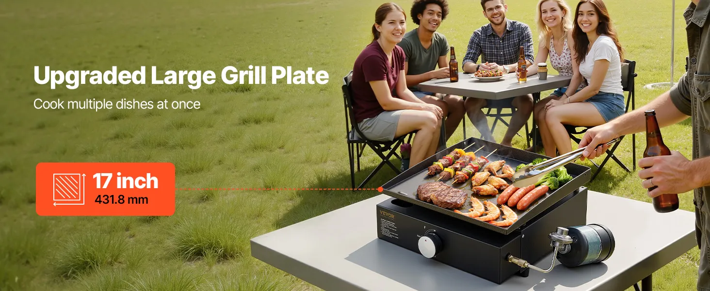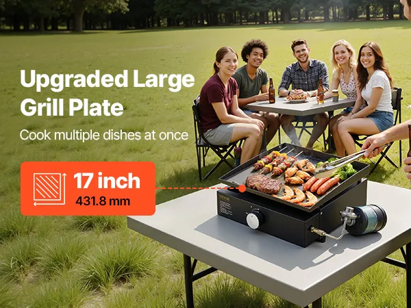 • Duża powierzchnia do grillowania: Dzięki powierzchni do grillowania wynoszącej 284 cale kwadratowe (ok. 284 cali kwadratowych), ten płaski grill propanowy oferuje mnóstwo miejsca do jednoczesnego przygotowywania różnych potraw, takich jak jajka, hamburgery, hot dogi, kiełbaski, bekon i naleśniki. Można również przygotować kilka dań jednocześnie, aby zaspokoić potrzeby rodziny i przyjaciół.