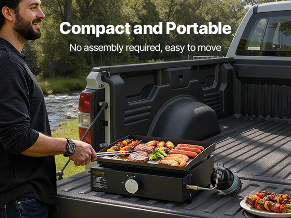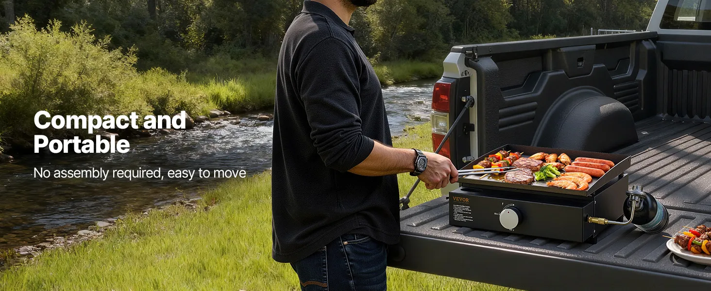 Płaska płyta grillowa VEVOR waży zaledwie 22 funty. Jest lekka i łatwa w transporcie. Dzięki temu idealnie nadaje się na kempingi i do gotowania na świeżym powietrzu. Możesz ją łatwo rozłożyć i złożyć, ponieważ jej przenośna konstrukcja umożliwia szybkie rozłożenie i przechowywanie. Łatwość transportu jest idealna dla osób, które lubią gotować na świeżym powietrzu. Płyta grillowa jest kompaktowa, dzięki czemu można ją łatwo przechowywać, gdy nie jest używana. Chociaż płyta grillowa ma lekką konstrukcję, oferuje dużą powierzchnię do gotowania. Nie wpływa to jednak negatywnie na jego wydajność, zapewniając najlepsze z obu światów.