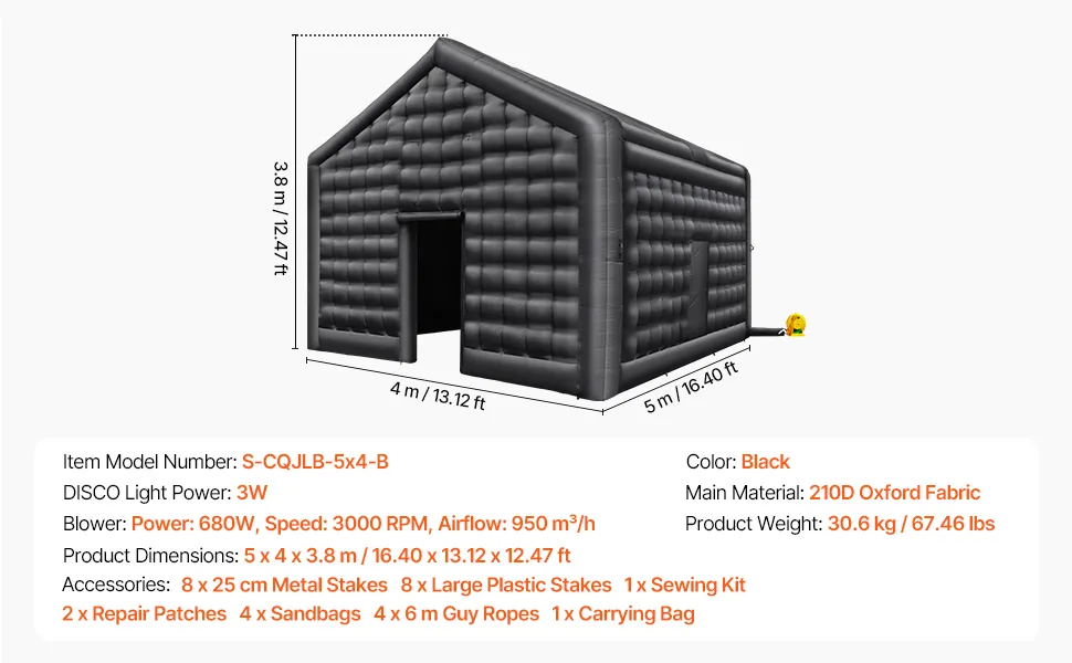 Nadmuchiwany namiot imprezowy VEVOR w klubie nocnym na przyjęcie urodzinowe, wesele 5x4x3,8m Nadmuchiwany namiot imprezowy VEVOR w klubie nocnym na przyjęcie urodzinowe, wesele 5x4x3,8m