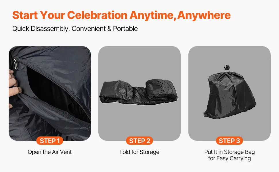 • Wygodna wentylacja: Dwa okna i przedni otwór wentylacyjny poprawiają cyrkulację powietrza, zapewniając komfort w Twoim dmuchanym klubie nocnym. Dołączona torba do przechowywania umożliwia łatwy transport i rozstawienie w dowolnym miejscu i czasie.