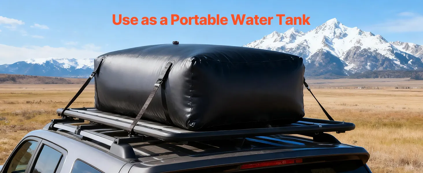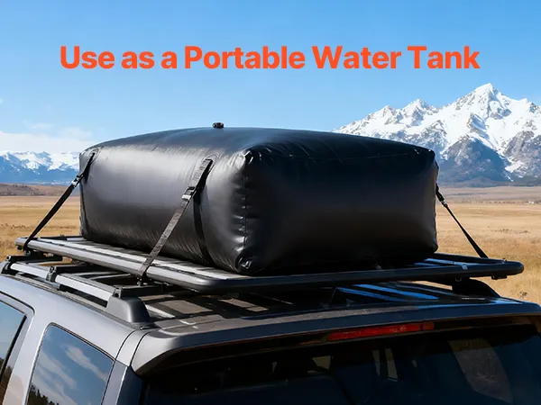 Mocno zamocuj worek z wodą do skrzyni ładunkowej swojego samochodu dostawczego, w bagażniku SUV-a lub na dachu, aby zapobiec jego ślizganiu się lub toczeniu podczas jazdy po wyboistych drogach i zapewnić stabilny środek ciężkości.