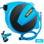 Ta montowana na ścianie skrzynka na wąż z automatycznym zwijaniem jest wykonana z materiału PVC do długotrwałego użytkowania. Złączki mosiężne 3/4 cala/19mm nie rdzewieją ani nie korodują. Dzięki długości 100 stóp może pokryć każdy zakątek Twojego ogrodu.