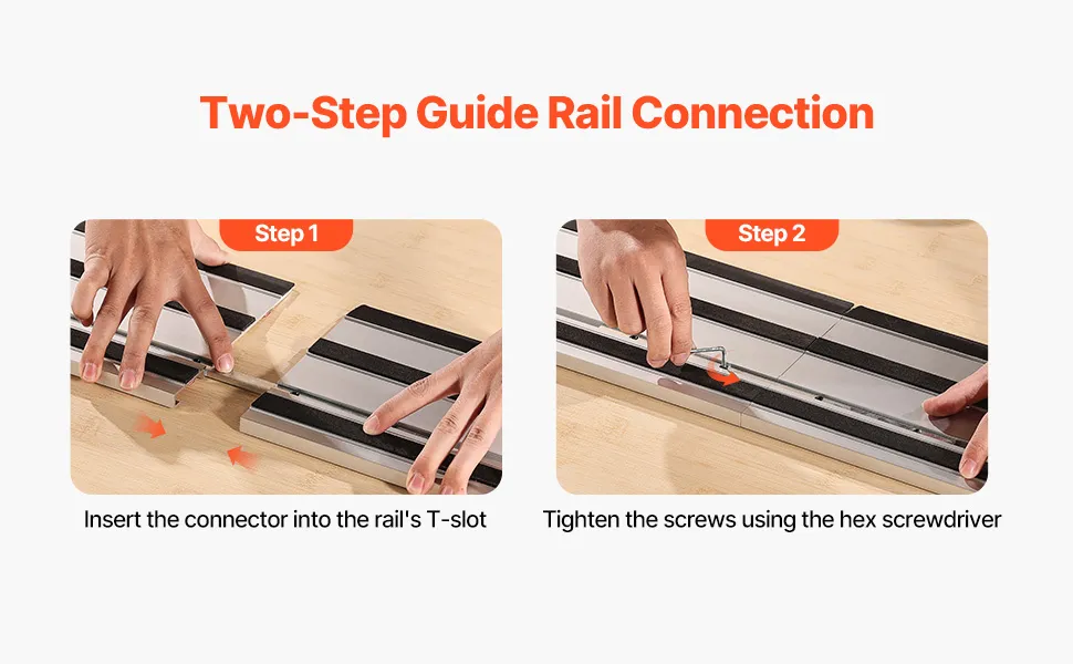 Precyzyjne i czyste cięcia: Zestaw szyn prowadzących do piły tarczowej zawiera cztery szyny prowadzące i 3 łączniki, które gwarantują proste, zrównoważone i precyzyjne cięcia. Niezależnie od tego, czy tworzysz meble na zamówienie, czy podejmujesz się skomplikowanych renowacji, ten system szyn zapewnia pewność przy każdym cięciu