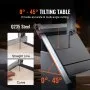 Cięcie pod wieloma kątami: Piła taśmowa do drewna wyposażona jest w stół uchylny, który można regulować w zakresie od 0 do 45°, co zapewnia większą elastyczność cięcia. Stół piły ma wymiary 15,75 x 21,57 cala / 400 x 548 mm i jest wykonany ze stali Q235, co zapewnia dodatkową wytrzymałość i trwałość. Pochylenie stołu o 45 stopni w prawo pozwala na łatwe i precyzyjne cięcie ukosów.