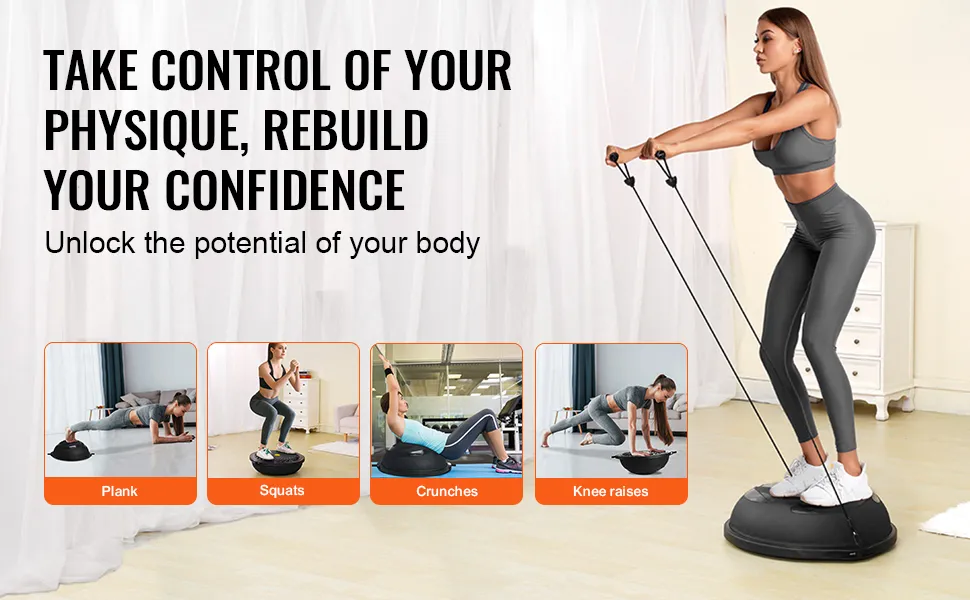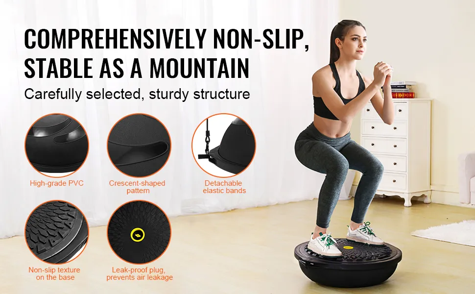 Ta piłka do ćwiczeń jest zbudowana tak, aby służyła długo. Wykonana jest z trwałych materiałów PVC, PP i TPE. Wysoka nośność 1500 funtów zapewnia spokój ducha. Możesz jej używać do intensywnych treningów bez obaw. Gruba i wytrzymała półkula zapewnia stabilność. Antypoślizgowa powierzchnia zapobiega wypadkom. Taśmy oporowe są mocne i niezawodne. Dzięki temu piłka treningowa jest solidnym elementem wyposażenia. Zaprojektowaliśmy ją tak, aby wytrzymała intensywne użytkowanie. Stabilność i trwałość sprawiają, że jest to niezwykle cenny dodatek do każdej domowej siłowni.