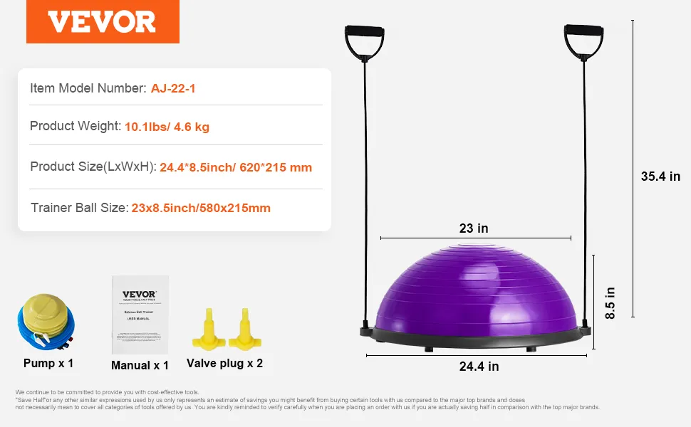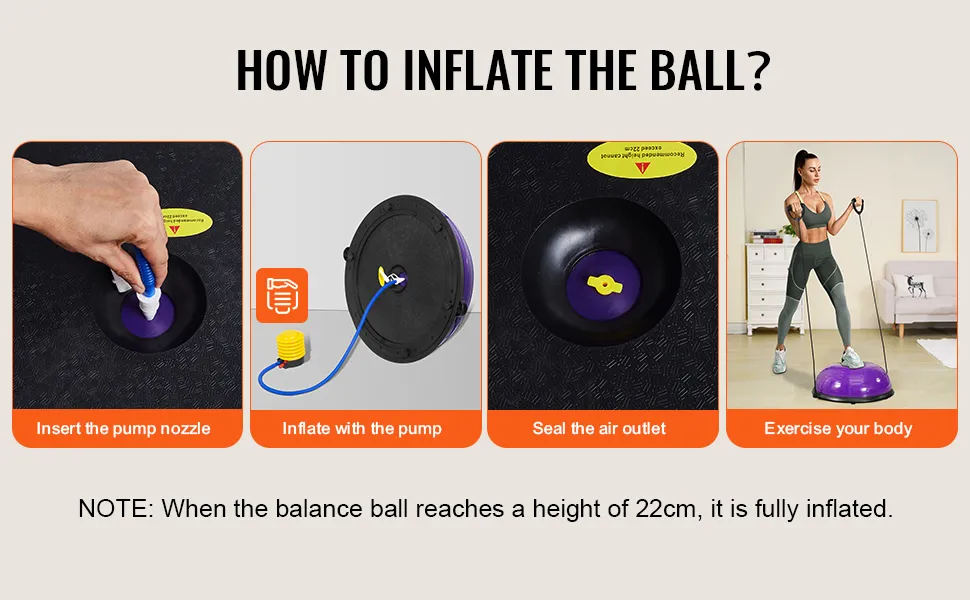 23-calowa piłka do ćwiczeń równowagi VEVOR jest wykonana z wysokiej jakości materiałów. Zawiera pompkę nożną, która ułatwia pompowanie. Możesz ją skonfigurować w ciągu kilku minut. Piłka jest wytrzymała i niezawodna, idealna do codziennych treningów. Proces pompowania jest prosty i szybki. Łatwo zachować jej kształt i twardość podczas użytkowania. Nasza piłka zachowuje swoją trwałość podczas użytkowania. Piłki zachowują swoją wytrzymałość i formę przez cały okres użytkowania. Ich trwała konstrukcja zapewnia długotrwałe użytkowanie. Rozmiar piłki zapewnia stabilność podczas treningu równowagi. Podstawa ćwiczeń jest idealna do różnych ćwiczeń. Możesz więc używać tej piłki w domu lub na siłowni. Dzięki łatwości konfiguracji nie musisz poświęcać czasu na przygotowanie, a więcej na ćwiczenia. Ciesz się bezproblemowym treningiem z tą piłką równoważną.