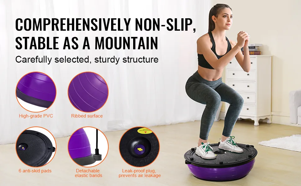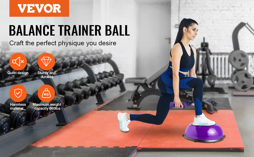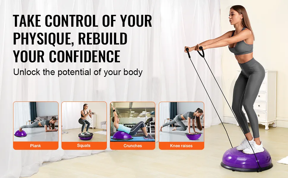 To idealne rozwiązanie do poprawy siły rdzenia i równowagi. Jej 23-calowa średnica zapewnia stabilną, ale dynamiczną powierzchnię do różnych ćwiczeń. Półpiłkowy kształt piłki zapewnia stabilność, dzięki czemu jest bezpieczniejsza w użyciu. Jest idealna do rehabilitacji, ponieważ pomaga wzmacniać mięśnie i poprawiać równowagę. Piłki można używać do jogi, pilatesu i innych ćwiczeń fitness. Ze względu na jej konstrukcję można ją łatwo włączyć do każdego treningu. Można jej używać do brzuszków, desek lub innych ćwiczeń wzmacniających mięśnie rdzenia, ponieważ piłka pomaga skutecznie angażować mięśnie rdzenia. Ta piłka jest zaprojektowana tak, aby wytrzymać ciężar do 660 funtów, zapewniając stabilność i bezpieczeństwo. Możesz ulepszyć swoje treningi dzięki tej wszechstronnej piłce do ćwiczeń.