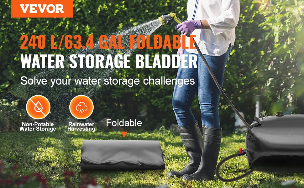 Ten przenośny zbiornik na wodę został zaprojektowany do różnych zastosowań, służąc jako zbiornik magazynujący wodę użytkową oraz jako system zbierania wody deszczowej. Oferuje proste i wydajne rozwiązanie do zarządzania wodą w miejscach bez stałych zbiorników wodnych.