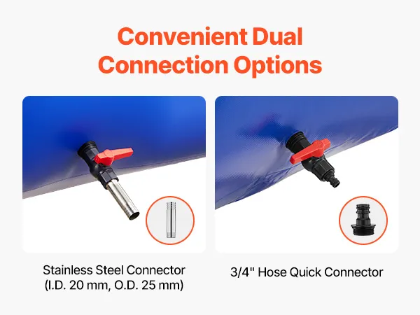 Dwuwarstwowy PVC 1000D: Wzmocniony dwuwarstwowy PVC 1000D, dwustronne powłoki PVC oraz rdzeń z siatki zapewniają odporność na rozdarcia i ścieranie. Zbiornik na wodę został zaprojektowany z myślą o wysokich obciążeniach rozciągających i charakteryzuje się szerokim zakresem tolerancji temperatur od -15°C do 75°C. Dzięki temu jest niezawodny zarówno w niskich, jak i wysokich temperaturach, a także wydłuża jego żywotność.