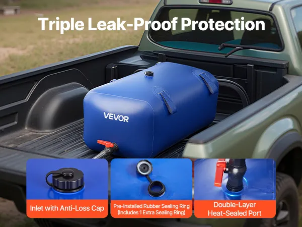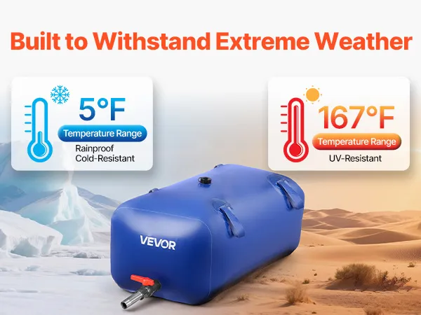 Dwuwarstwowy PVC 1000D: Wzmocniony dwuwarstwowy PVC 1000D, dwustronne powłoki PVC oraz rdzeń z siatki zapewniają odporność na rozdarcia i ścieranie. Zbiornik na wodę został zaprojektowany z myślą o wysokich obciążeniach rozciągających i charakteryzuje się szerokim zakresem tolerancji temperatur od -15°C do 75°C. Dzięki temu jest niezawodny zarówno w niskich, jak i wysokich temperaturach, a także wydłuża jego żywotność.